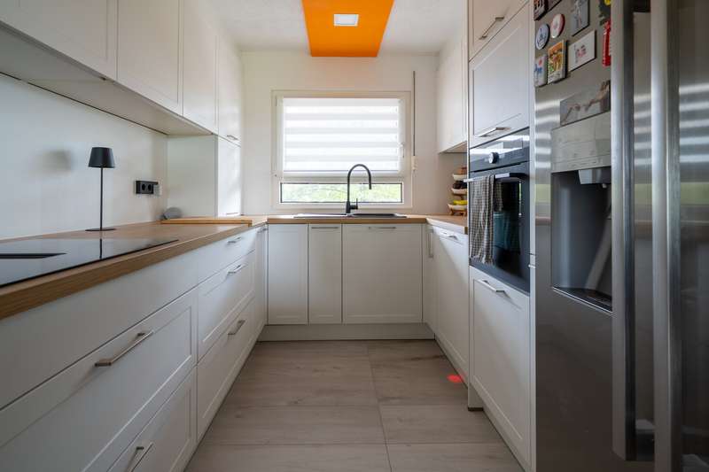 This very well-kept 4-room apartment with a living space of around 110 m² is located in a beautiful district of Villingen - in Marbach - on the 1st floor of a special residential complex built in 1974. The property impresses with its successful room layout, numerous modernizations and additional features that make living comfortable. The spacious living and dining room with adjoining open kitchenette forms the heart of this apartment. Large windows and balcony access provide pleasant daylight and a friendly atmosphere. The balcony offers a wonderful view to the south-west and invites you to spend cozy evenings in the fresh air. The modern fitted kitchen is from 2023 and has plenty of storage space and work surfaces. The fittings are of a high quality. A spacious bedroom and two further rooms provide enough space for you and your children, guests or to combine with a home office. An inviting bathtub for relaxing moments and a shower await you in the bathroom, while a separate guest WC offers additional comfort. The apartment has double-glazed plastic windows, some even with triple glazing. The property was extensively renovated in 2019, which is clearly reflected in the very well-kept overall impression. Heating is provided by gas central heating. A separate cellar compartment is available and offers additional storage space. There are outdoor parking spaces in front of the building, offering residents and guests ample parking space. The residential complex with its apartment buildings is looked after by a janitor service and a property management company, which take care of maintenance and tidiness - an aspect that provides additional relief and convenience. The apartment is ready for occupancy by arrangement and is suitable for both couples and families looking for a solid and well-kept property in a beautiful residential area. See the benefits of this modern apartment for yourself during an on-site viewing. We look forward to hearing from you and will be happy to provide you with further information. Your VON POLL real estate team in Villingen-Schwenningen