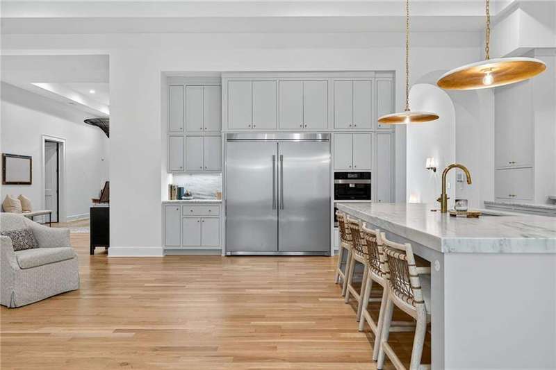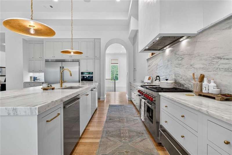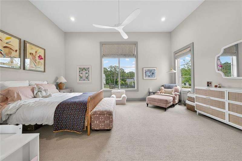 Better Than New Construction in Prime Milton Location Experience elevated living in this custom-designed ranch-style home, privately gated and nestled on a beautifully manicured one-acre lot in highly sought-after Milton. Zoned for top-rated Birmingham Falls Elementary, Northwestern Middle, and Cambridge High School, this home offers luxury, comfort, and thoughtful design in one of North Atlanta's most desirable communities. Step inside to soaring 14-foot ceilings on the main level and 10-foot ceilings on the terrace level, setting the tone for open, airy living throughout. The split-bedroom ranch floor plan ensures privacy and an effortless flow between spaces, ideal for both everyday life and entertaining. At the heart of the home, the designer kitchen is as functional as it is stunning, featuring a 48-inch Wolf range, oversized built-in refrigerator, double dishwashers, marble countertops, a spacious center island, a Miele built-in coffee and espresso maker, and a generous eat-in kitchen area. The kitchen flows seamlessly to the living room showcasing custom built-ins, and the stackable sliding doors open onto a screened-in porch with a fireplace-perfect for enjoying all seasons. Both levels of the home feature stackable sliding doors, creating seamless indoor-outdoor living and allowing abundant natural light to flow through the space. Every bedroom includes its own en-suite bathroom, and all closets throughout the home are fully customized by Artisan Custom Closets. The primary suite is a true private retreat with trayed ceilings and arched pocket doors leading to a spa-like bathroom and a luxurious walk-in closet with a custom center island that connects directly to the laundry room for added convenience. The fully finished terrace level includes a flexible gym or golf simulator area, lounge spaces, a dedicated office, and two private guest suites. The terrace-level living area opens to a covered patio through stackable sliding doors, making it an ideal space for relaxing or entertaining. Additional highlights include a three-car garage, a metal (tin) roof, and speakers in the gym with the opportunity for whole-home audio, as the property is pre-wired for sound throughout. Every inch of this home has been carefully curated and thoughtfully constructed-offering timeless design, superior craftsmanship, and true better-than-new construction in a prime Milton location.