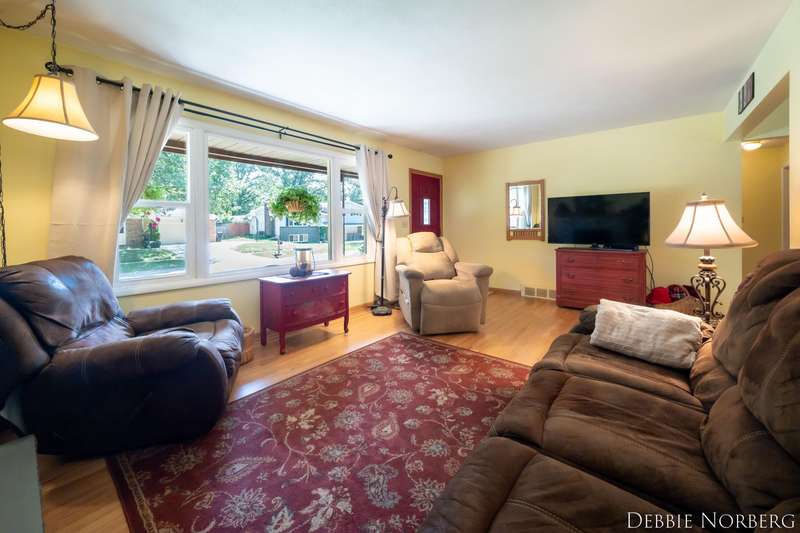 Welcome home! This house offers 3 bedrooms, 2 bathrooms, 2 fireplaces, (main level is gas), hard wood flooring, with replacement windows, doors and plenty of storage. Bonus room in basement could be converted into an extra bedroom (needs an egress window) or office. Good size back yard has a newer deck, shed with concrete floor and privacy fence surrounding it. Make your appointment today!!
