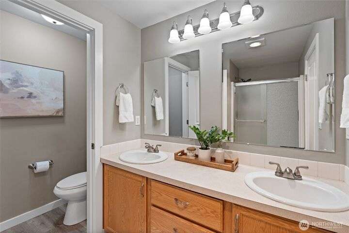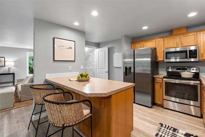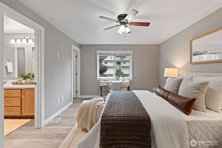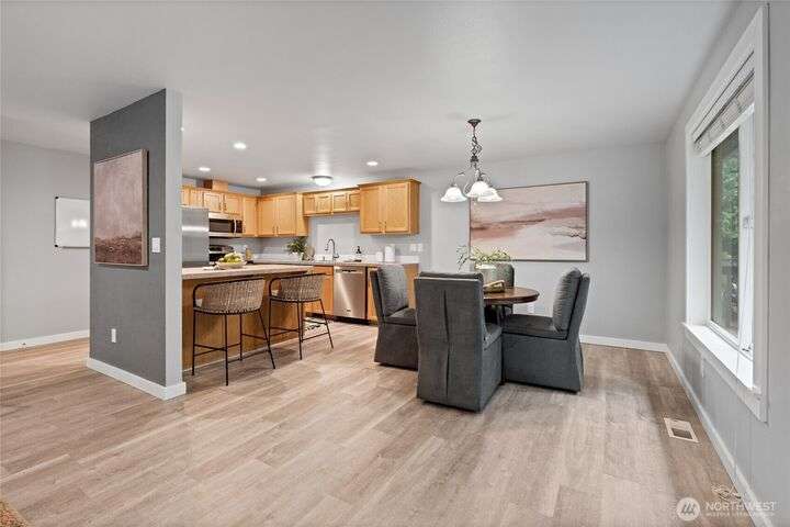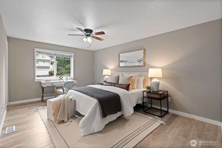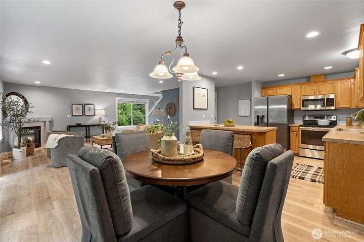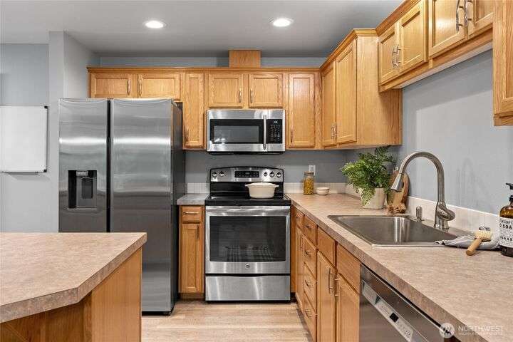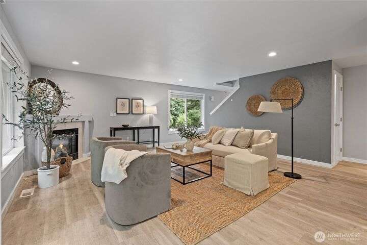 Welcome to Cedar Grove! This beautifully maintained 3 bed, 2.25 bath townhome offers open concept living, a 3-car garage, & 2,072 sq ft across three levels. Enjoy peace of mind with a new roof & water heater, newer Trex deck, & updated kitchen appliances. Interior features include a primary walk-in closet, cozy fireplace, new doors, & updated bathroom sinks. Additional parking space behind the fence for a trailer, ATV, or boat. HOA dues cover water, septic, exterior maintenance, front lawn care, & private beach access to Lake Tapps. Walking trail to Lakeridge Middle School. Safe on lower level conveys.
