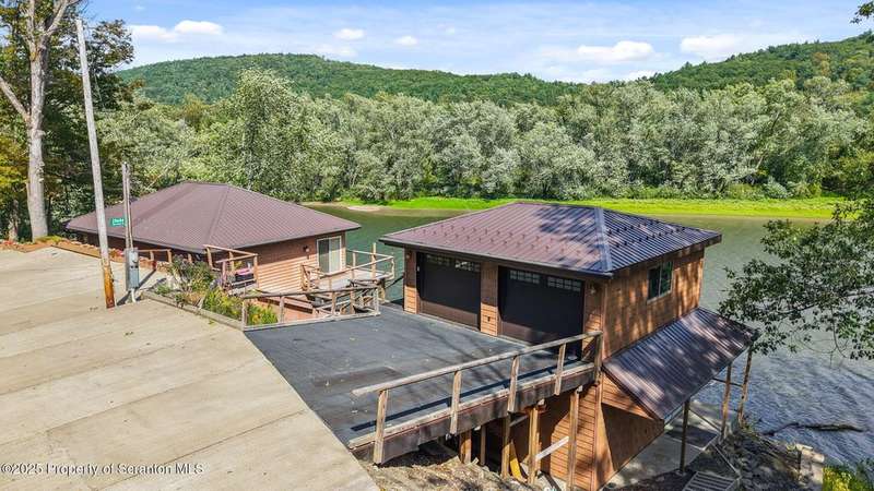 Discover the perfect riverfront retreat with this custom-built contemporary home, nestled on the beautiful Susquehanna River. Designed for modern living, the open-concept floor plan offers breathtaking river views from nearly every room, making it the ideal setting for relaxation and entertainment. With two spacious bedrooms, 1 1/2 baths, and ample storage, this home combines comfort and functionality in a picturesque location.The property includes a second lot featuring a two-story garage, offering potential for additional living space or a studio--complete with the flexibility to finish it to suit your needs. A standout feature of this home is the rainwater filtration system, providing an eco-friendly and sustainable water source.Enjoy the serene beauty of river life with opportunities for fishing, kayaking, and more, right outside your door. The property also offers plenty of parking for convenience.