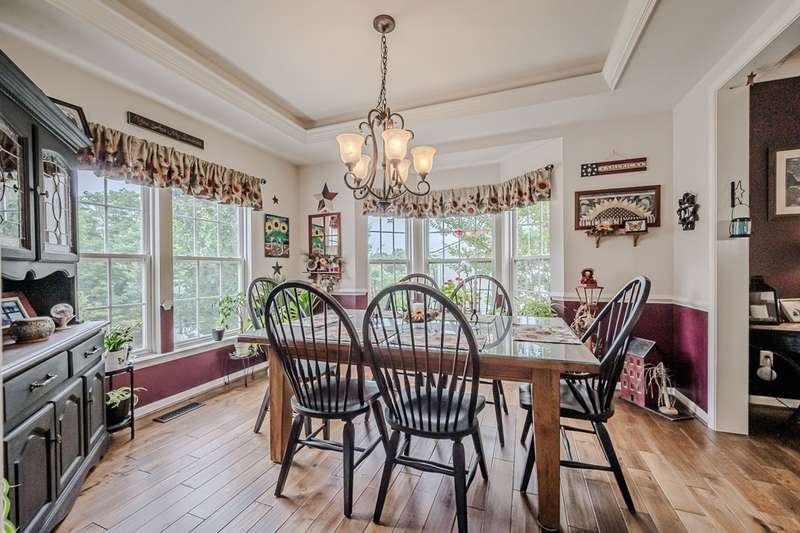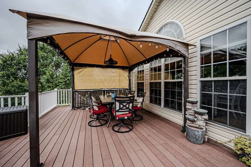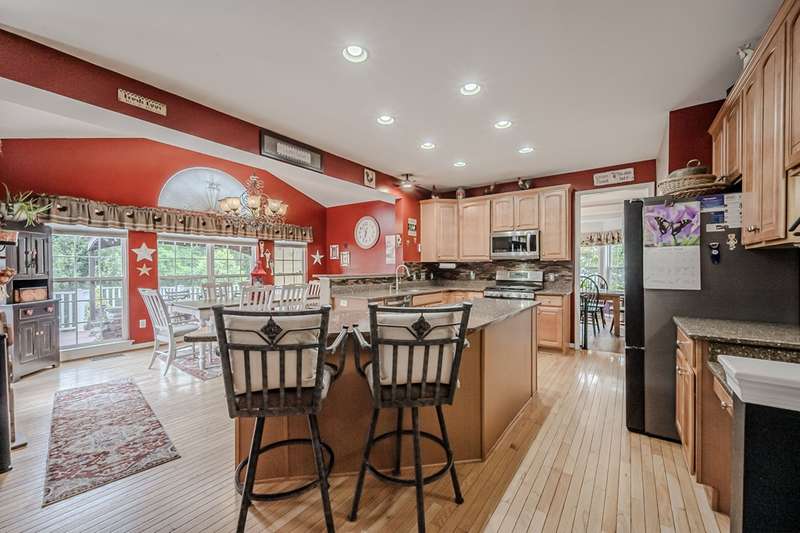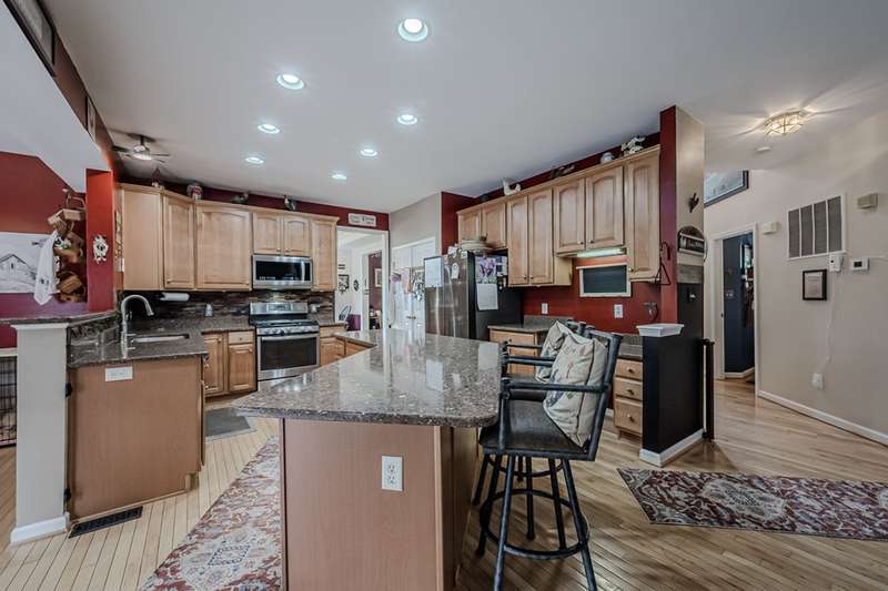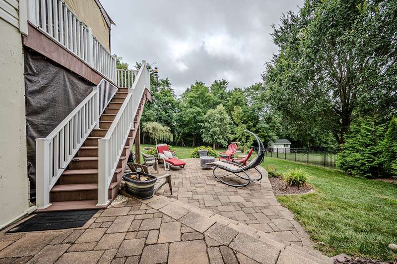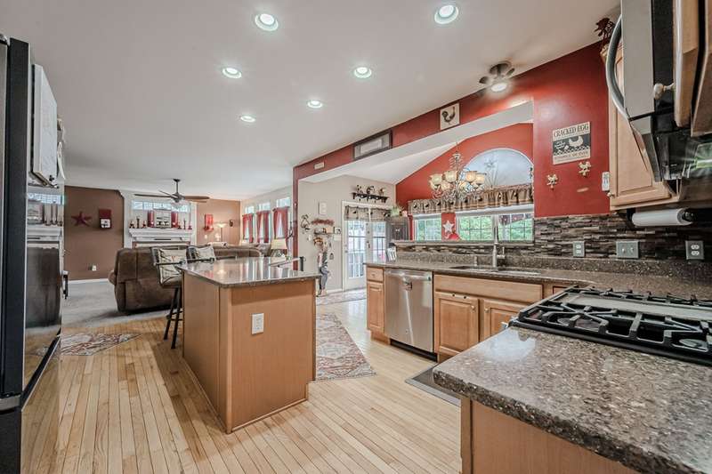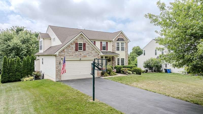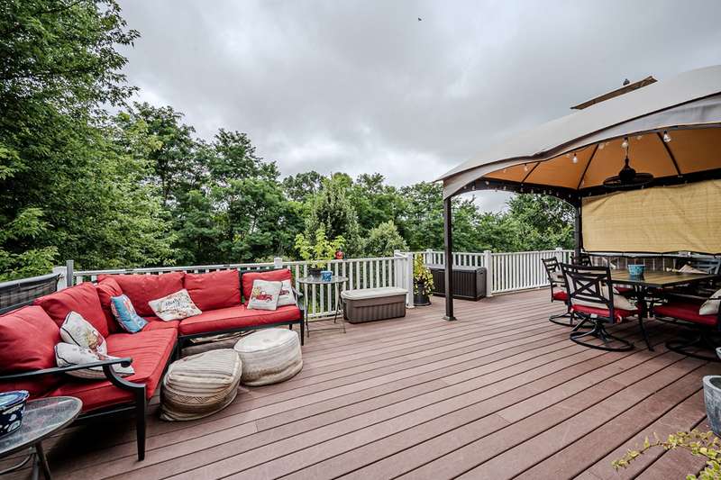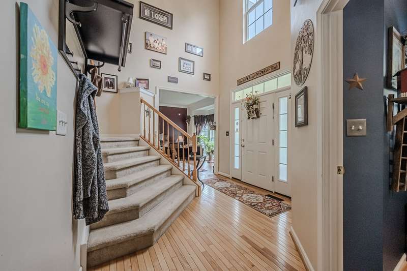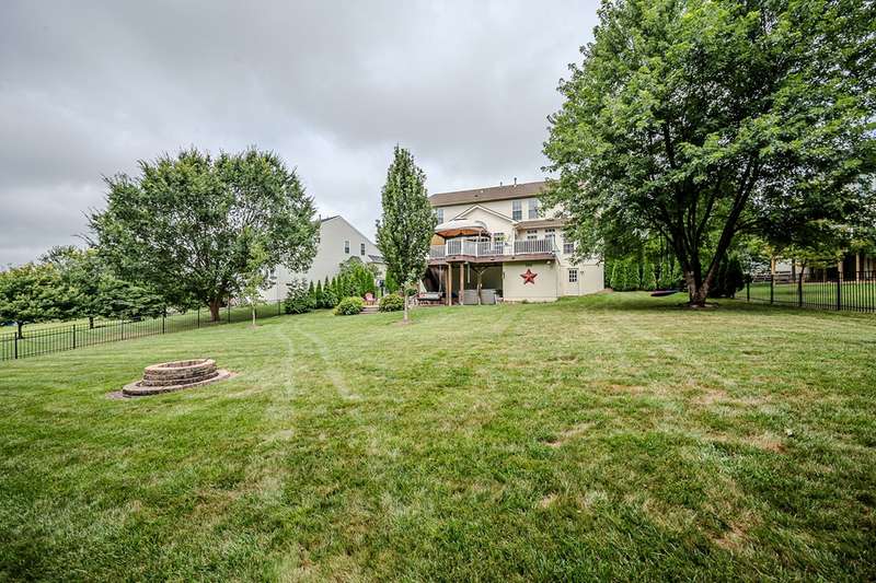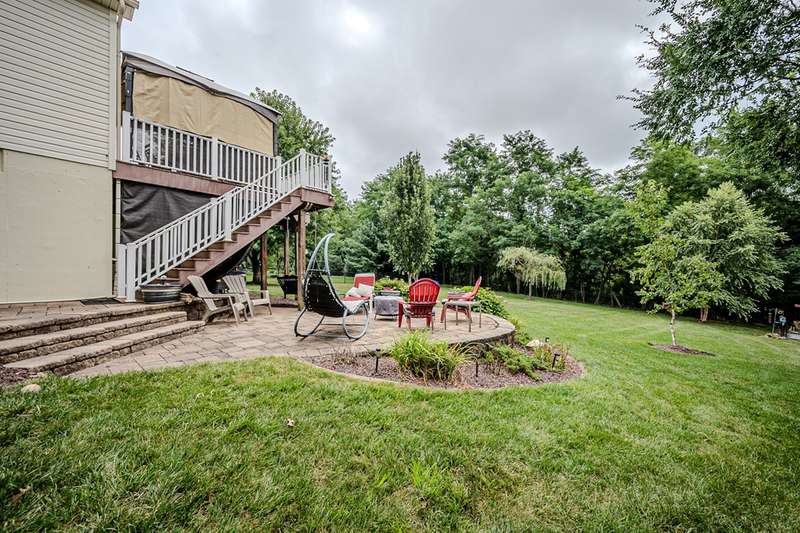 Welcome to this stunning and spacious 4-bedroom, 3 full and 1 half-bathroom Traditional style home, one of the largest homes in the desirable neighborhood of Quarry Ridge. This 3-level home boasts a variety of features that are sure to impress buyers looking for their dream home. As you enter the home, you are greeted by a grand two-story foyer that sets the tone for what is to come. The main level features a seamless flow from the living room to the dining room, complete with new hardwood floors and bay windows that flood the space with natural light. The kitchen is a chef's delight, with quartz countertops, wood backsplash stainless steel appliances, and a separate breakfast room, with vaulted ceiling, oversized windows allowing for plenty of sunlight, enjoy your meals while viewing your beautiful backyard. The kitchen opens to a deck with a beautiful covered Gazebo perfect for outdoor entertaining. The family room is a cozy retreat with gas fireplace and includes a private office for added convenience. Upstairs, the master bedroom awaits with its vaulted ceiling, large walk-in closet, and a spacious ensuite bathroom with double sinks and a separate water closet. Three additional bedrooms offer plenty of space for family or guests, with one bedroom featuring pergo flooring and all bedrooms are equipped with ceiling fans, The full finished walk-out basement is a versatile space, offering a full bathroom, an additional room that could serve as a guest room, and a bar and entertainment room that leads to an outside paved stone patio, plenty of storage space as well. Additionally, the exterior of the property features a hot tub for relaxation and multiple patio and deck spaces along with a garden and firepit for enjoying this beautiful yard. The home has one of the largest lots in the neighborhood, which is completely fenced in and backs up to woods for beauty and privacy, this home truly has it all. Don't miss the opportunity to make this extraordinary property your own. New Roof in 2022 and 2 zone HVAC replaced in 2023. Full list of updates in disclosures. Schedule a showing today!