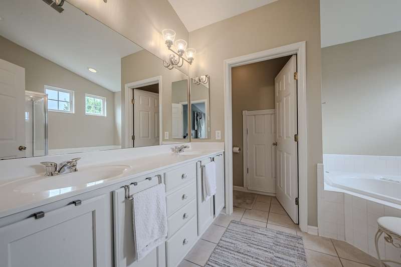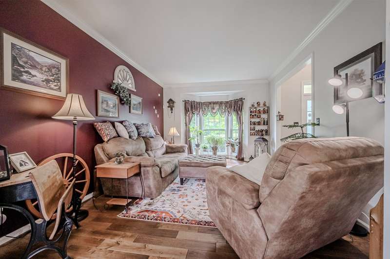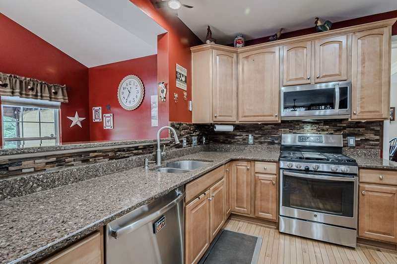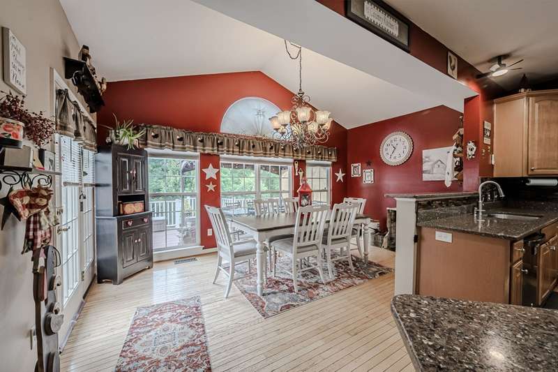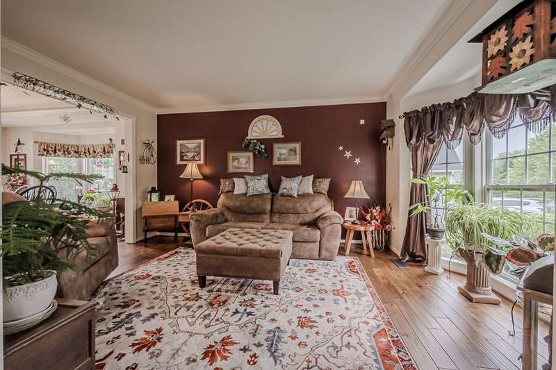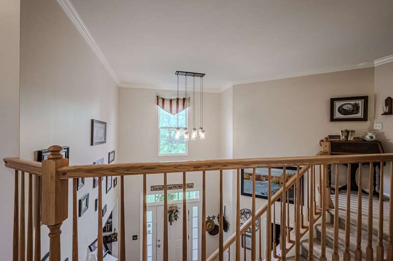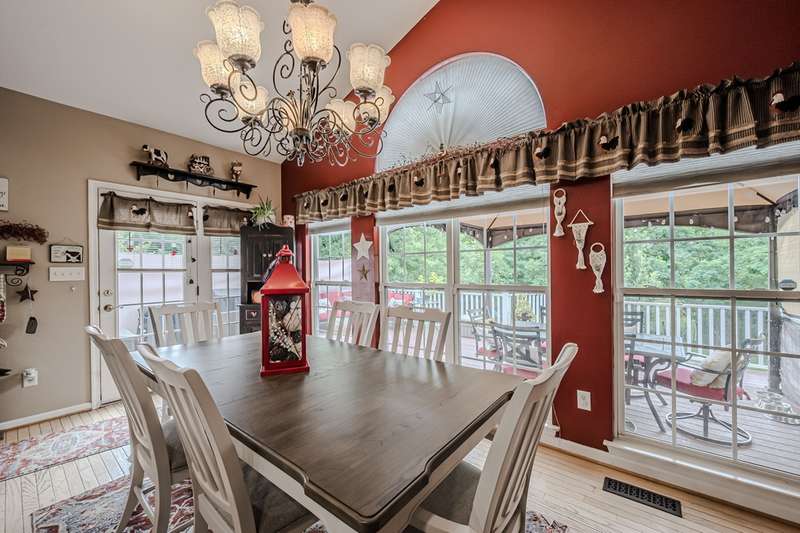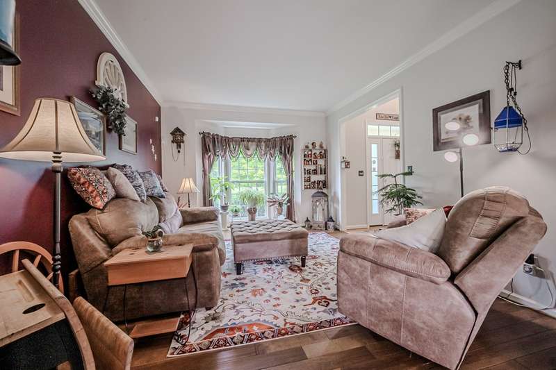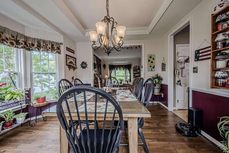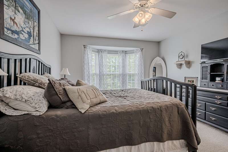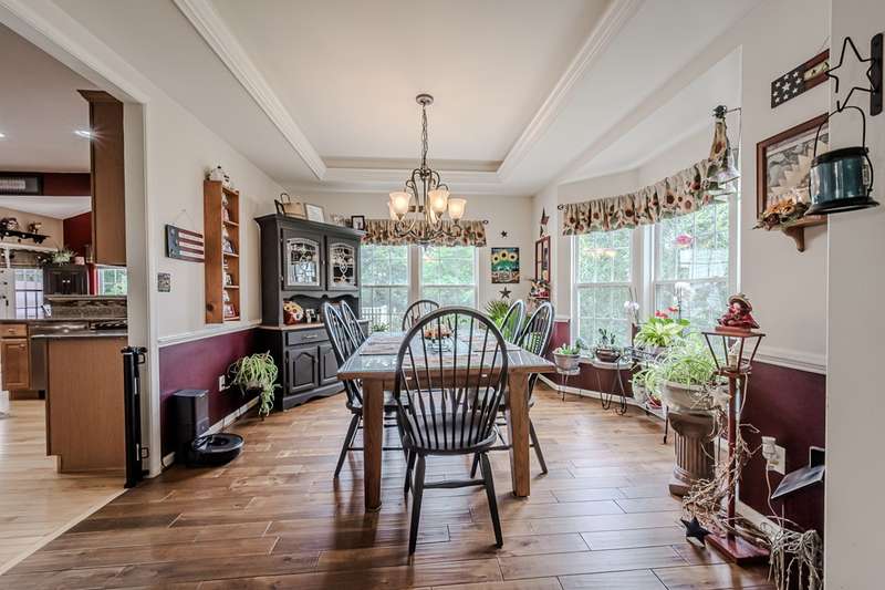 Welcome to this stunning and spacious 4-bedroom, 3 full and 1 half-bathroom Traditional style home, one of the largest homes in the desirable neighborhood of Quarry Ridge. This 3-level home boasts a variety of features that are sure to impress buyers looking for their dream home. As you enter the home, you are greeted by a grand two-story foyer that sets the tone for what is to come. The main level features a seamless flow from the living room to the dining room, complete with new hardwood floors and bay windows that flood the space with natural light. The kitchen is a chef's delight, with quartz countertops, wood backsplash stainless steel appliances, and a separate breakfast room, with vaulted ceiling, oversized windows allowing for plenty of sunlight, enjoy your meals while viewing your beautiful backyard. The kitchen opens to a deck with a beautiful covered Gazebo perfect for outdoor entertaining. The family room is a cozy retreat with gas fireplace and includes a private office for added convenience. Upstairs, the master bedroom awaits with its vaulted ceiling, large walk-in closet, and a spacious ensuite bathroom with double sinks and a separate water closet. Three additional bedrooms offer plenty of space for family or guests, with one bedroom featuring pergo flooring and all bedrooms are equipped with ceiling fans, The full finished walk-out basement is a versatile space, offering a full bathroom, an additional room that could serve as a guest room, and a bar and entertainment room that leads to an outside paved stone patio, plenty of storage space as well. Additionally, the exterior of the property features a hot tub for relaxation and multiple patio and deck spaces along with a garden and firepit for enjoying this beautiful yard. The home has one of the largest lots in the neighborhood, which is completely fenced in and backs up to woods for beauty and privacy, this home truly has it all. Don't miss the opportunity to make this extraordinary property your own. New Roof in 2022 and 2 zone HVAC replaced in 2023. Full list of updates in disclosures. Schedule a showing today!