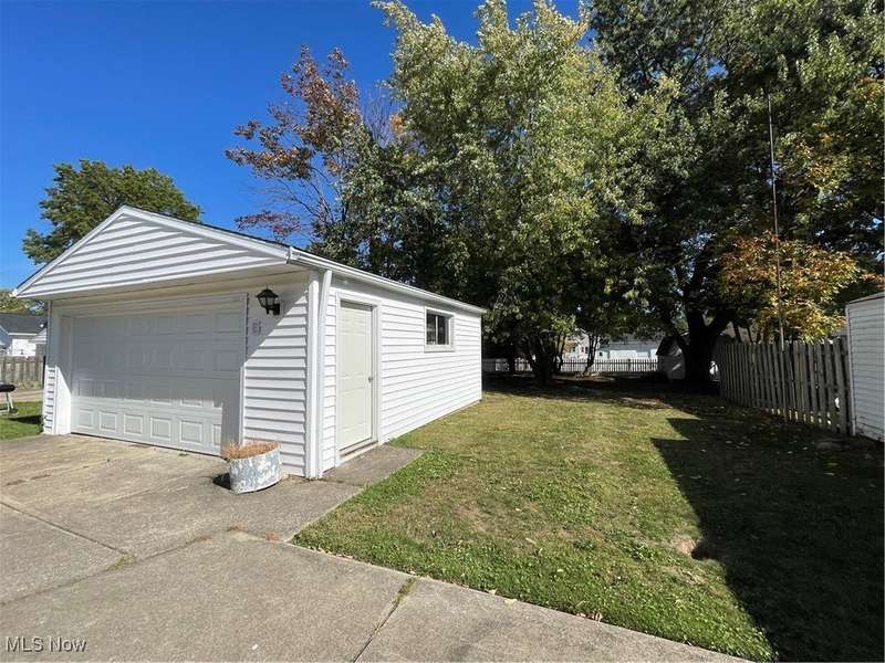 Welcome to 1337 Elmwood Rd in Mayfield Heights, an adorable 2-bedroom ranch featuring a completely remodeled kitchen with new gray cabinets, custom countertops, stainless steel range, refrigerator, and microwave, as well as wood-look LVP flooring. The kitchen also includes a cozy eating area, additional built-in cupboards, and a wall-mounted air conditioner. The living room and hallways are updated with LVP flooring, while both bedrooms offer hardwood floors and share a fully remodeled bathroom. Recent updates include new steel doors at the front and side entrances, along with a new garage door. The basement is ready for your creative touch, already plumbed for a half bath and can be transformed into a family recreation area. A detached 2-car garage includes a bonus room ideal for crafters, gardeners, or hobbyists. Recent city improvements on Elmwood Rd include new gas lines to each home. Whether you're looking for a comfortable residence or a solid rental property, this home offers convenient access to schools, shopping, restaurants, parks, highways, and more. Quick closing is possible and you can be in your new home for the holidays!