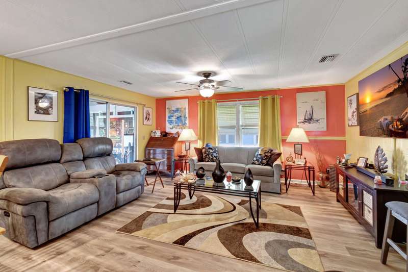 Welcome to Jamaica Bay, a highly desirable 55+ gated mobile home community, offering this well-maintained 2-bedroom, 2-bath residence. NEW AC 8/2025! Featuring an open-concept kitchen, living, and dining area with beautiful laminate flooring throughout, this home is move-in ready. Recent upgrades include a roof sealed in 2024, a new primary bath vanity, updated baseboards, and new kitchen hardware. A new skirt was installed in 2023. Enjoy outdoor living with a separate patio, perfect for grilling and relaxing. The home can be furnished or furniture negotiable. Community amenities include a clubhouse, library, billiards, Bocce ball, dog park, and plenty of social activities. With no rentals allowed, this is your chance to embrace the South Florida lifestyl
