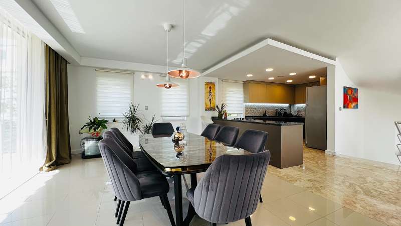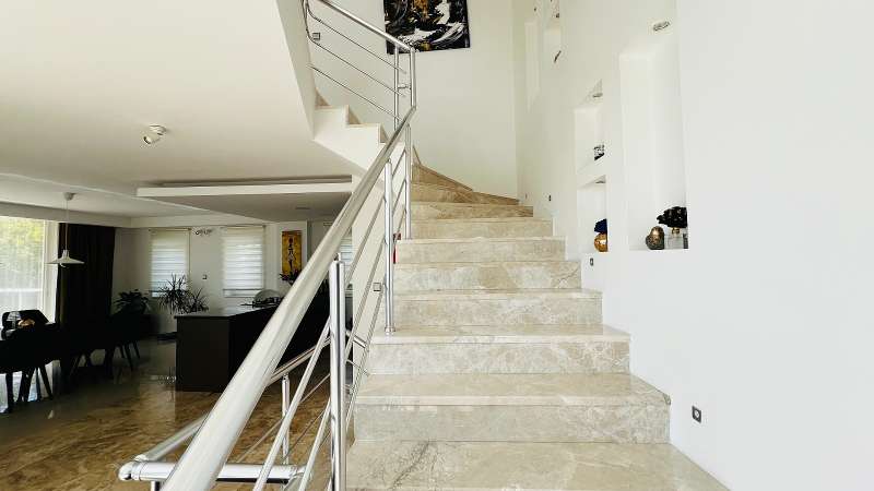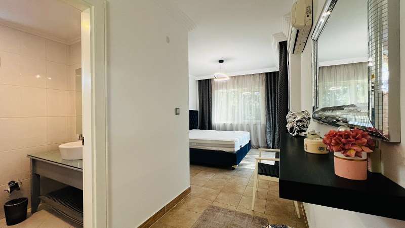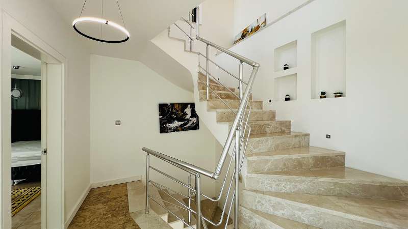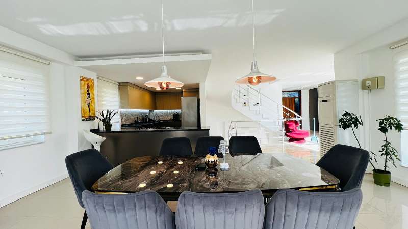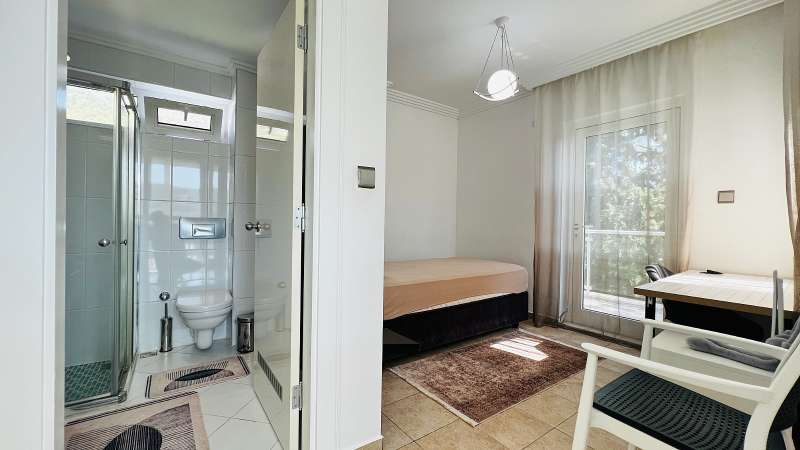 The villa for sale in Kemer Antalya is within walking distance of daily amenities, 3 km from Kemer center, 4 km from the sea, and 60 km from Antalya Airport.