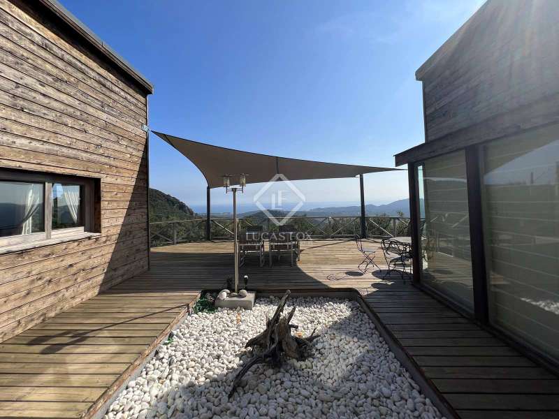 This attractive and unique villa was built in 2006 and has an area of 219 m² built on a plot of 800 m². It is located in the quiet residential area of Roca de Malvet, in Santa Cristina d'Aro, 10 minutes by car from the centre of the famous coastal town of Platja d'Aro where several of the wonderful beaches and coves of the Costa Brava are located. . The villa sits on a plot on the mountainside facing south and offers magnificent views of the mountains, the Mediterranean Sea and the municipalities of Sant Feliu de Guíxols, S'Agaró and Santa Cristina d'Aro. The property is expressly designed to enjoy the views from the main room of the villa and, at the same time, maximize the advantages of its wonderful south orientation. The property is distributed over two floors. At street level, there is an exterior parking area for several cars and the exterior entrance to the villa. The villa is accessed through the upper or main floor . It consists of a entrance hall, a guest toilet, a large living-dining room with a fireplace and an open kitchen with large windows. Both rooms offer access to the fantastic outdoor areas , mainly the large terrace, with a chill-out area and exterior dining room , perfect for relaxing while contemplating the views. This floor also has two double bedrooms with their respective private bathrooms and a small and practical storage room. The lower floor has a large double bedroom with access to the garden, a wine cellar that is currently used as a games room and a multipurpose room with large windows, currently designed as a spa area with a jacuzzi and chill-out area. Without a doubt, it is a unique villa with a very attractive design that at the same time offers great comfort, while enjoying a privileged environment, thanks to the green areas that surround the property and its beautiful views of the sea and the mountains. Contact our team of agents for more information.