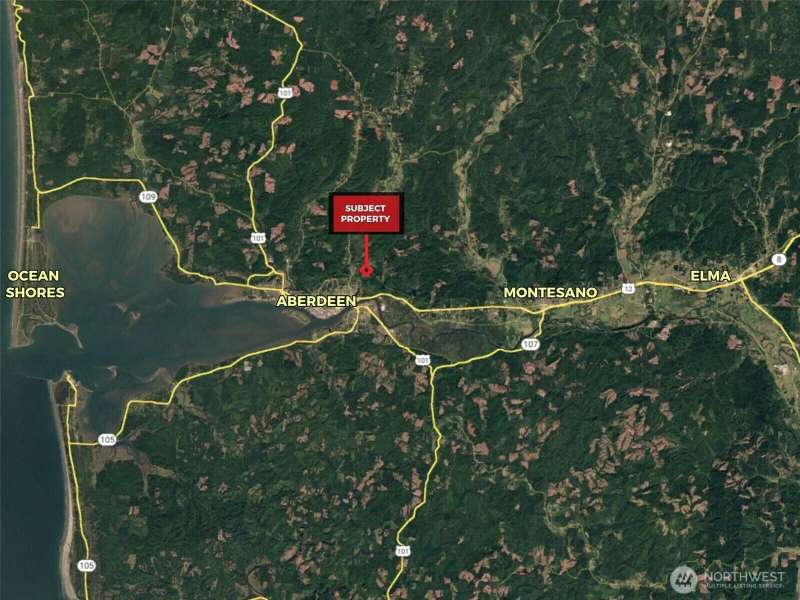 REDUCED PRICE on this 7.461-acre parcel located just north of Aberdeen's city limits. Beautiful views of downtown Aberdeen with the Chehalis River culminating into the bay as the backdrop. Secluded and private setting surrounded by miles of timberland. There's potential residential value but lot is perfect for hunting or camping. Property sits way off paved E. Wishkah Road behind a gate and about 5 minutes from downtown Aberdeen. Bordered by additional land that is available for purchase. Generally sloping topography with some level shelves. Property is surveyed. Ocean Shores is only about 30 minutes away. Owner financing is an option.