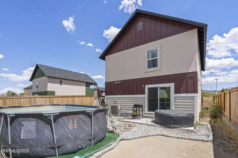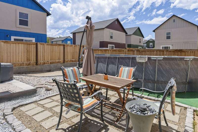 Welcome to 3875 Bonnie Place - a stylish 3-bedroom, 2.5-bath home in one of Carson City's most convenient and connectedneighborhoods. Built in 2023, this modern gem offers mountain views, a private balcony, and a fully fenced backyard perfect forrelaxing or entertaining.Step inside to a bright, open layout featuring a sleek kitchen with stainless appliances including an electric range, microwave,dishwasher, disposal, and refrigerator - plus a washer and dryer, all included. The living area centers around a built-in electricfireplace with a stunning holographic display, adding warmth and personality to the space.Direct access to walking paths, and a prime location just minutes from downtown, local dining, and shopping - plus an easy30-minute drive to both Lake Tahoe and Reno - this home blends comfort, convenience, and modern style. **The above-ground pool and spa are negotiable and can be included or removed depending on buyer preference.**