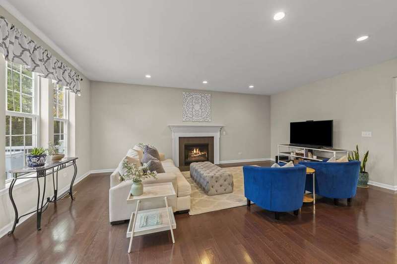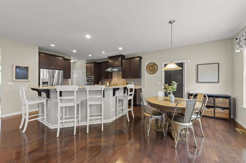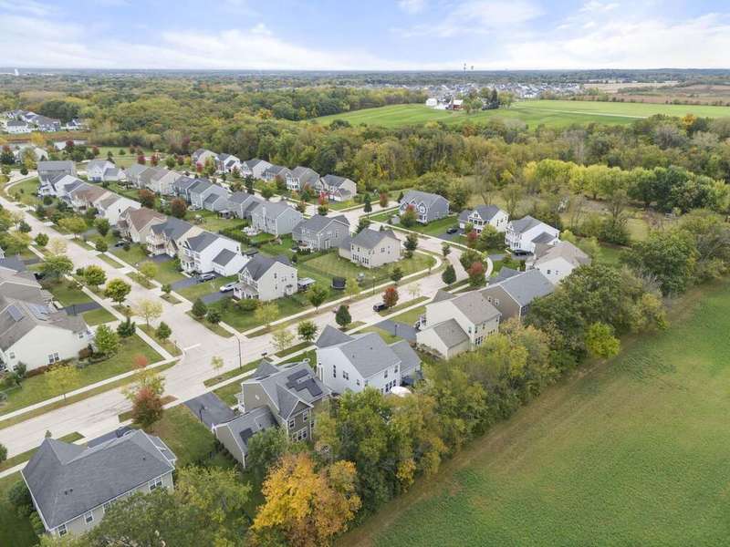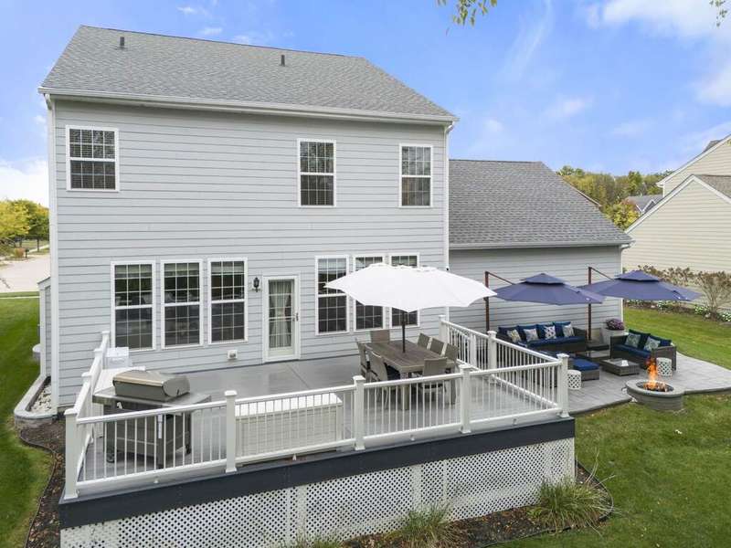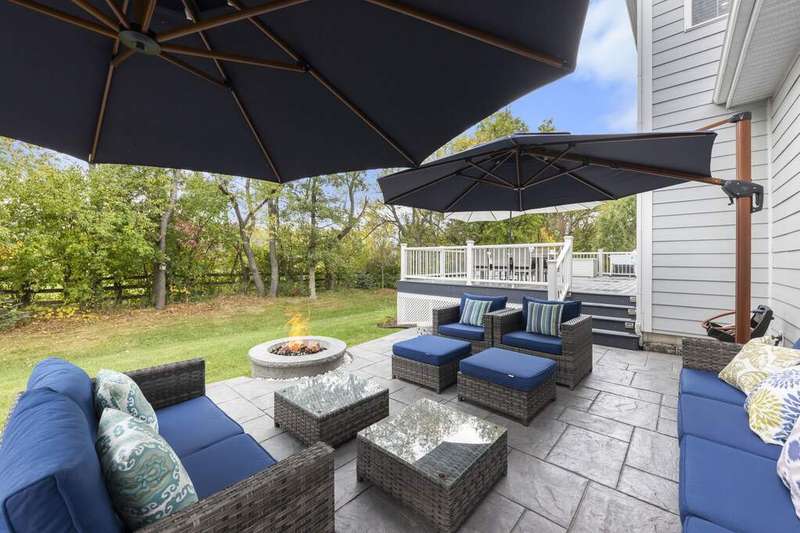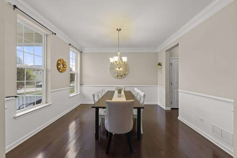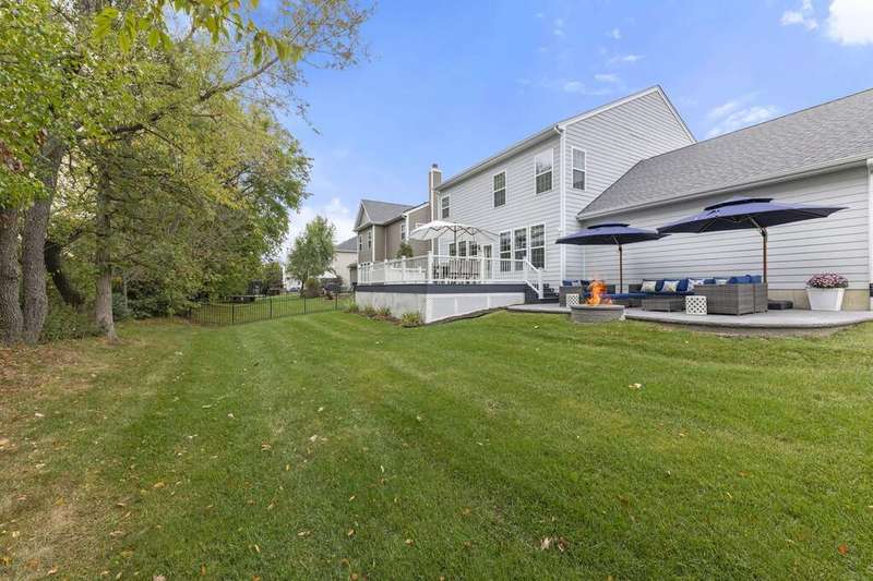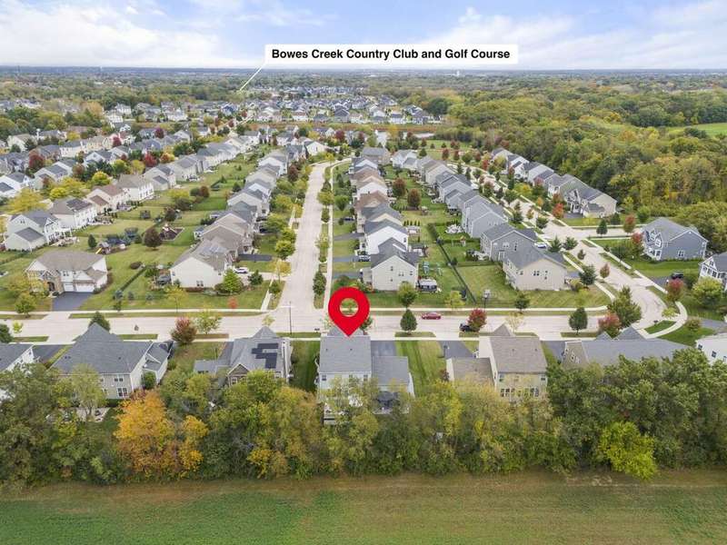 Nestled within the highly sought-after Bowes Creek Country Club and top-rated School District 301, this 4-bedroom, 3.5-bath home sits on a premium lot with no direct rear neighbors, offering tree-lined views and the kind of privacy that makes everyday living feel elevated. From the moment you step onto the welcoming front porch, you'll feel the warmth and attention to detail that define this home. Inside, hardwood floors flow throughout the main level, highlighted by crown molding and natural light pouring through expansive windows overlooking the serene backyard. The kitchen is the true heart of the home - designed for both gathering and entertaining - featuring 42-inch cabinetry, stainless-steel appliances, a large center island, and generous counter space. It opens to a spacious gathering room with a direct-vent fireplace, and a wall of windows completes the space, showcasing beautiful backyard and deck views. Step outside to your own retreat with a Trex deck, stamped-concrete patio, built-in firepit, and irrigation system, all surrounded by mature trees and peaceful views. With no direct rear neighbors, it's a serene place to relax or entertain. Upstairs, the primary suite feels like a private getaway with dual sinks, a soaking tub, a separate shower, and an oversized walk-in closet. Three additional bedrooms are generously sized, each with large closets - two are walk-ins. The second-floor laundry, a builder upgrade, adds everyday convenience. The finished basement expands your living space with a custom wet bar, built-in cabinetry, full bath, and flexible areas for entertaining, fitness, or relaxing. A 2.5-car garage and custom mudroom with built-in cubbies keep everything organized and out of sight. Located in one of Elgin's most desirable communities, this home combines refined finishes with a functional design and a setting that's both private and convenient - close to parks, walking paths, and everyday amenities. As part of the Bowes Creek Country Club neighborhood, residents enjoy easy access to one of the area's premier golf courses, scenic winter trails for snowshoeing, and an on-site dining option.