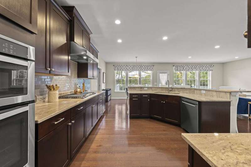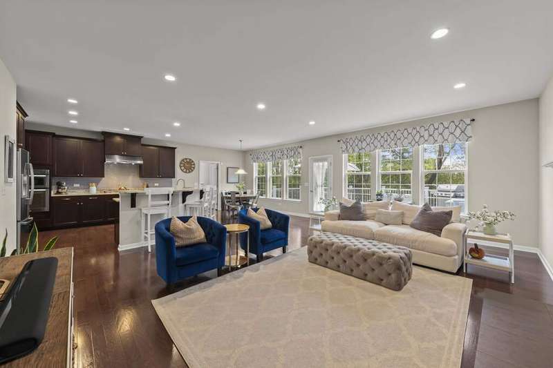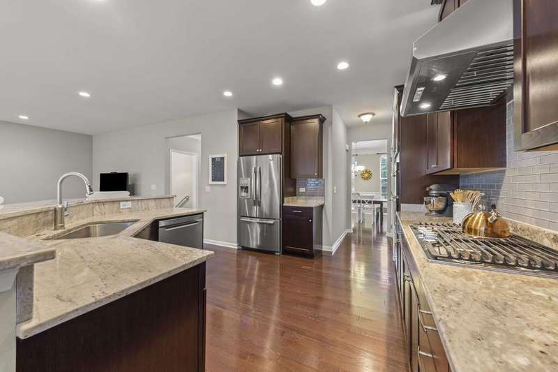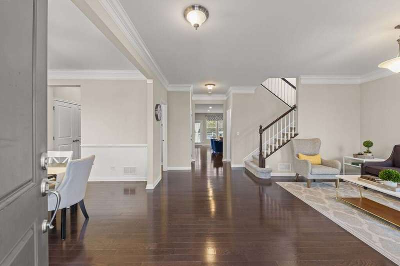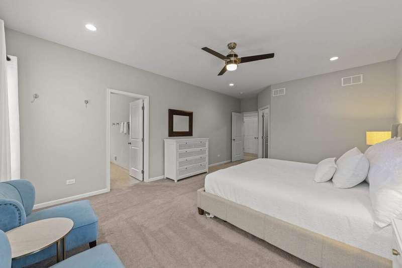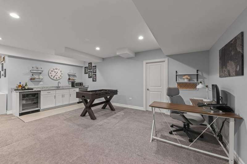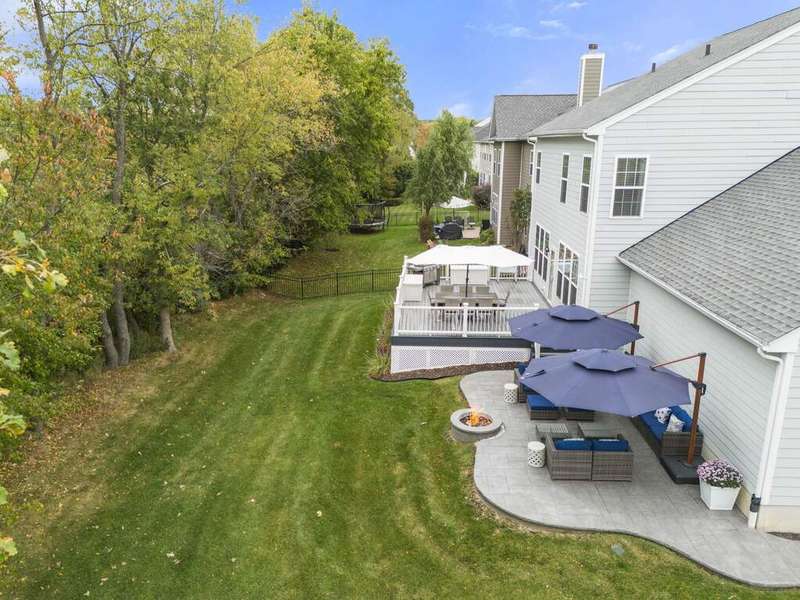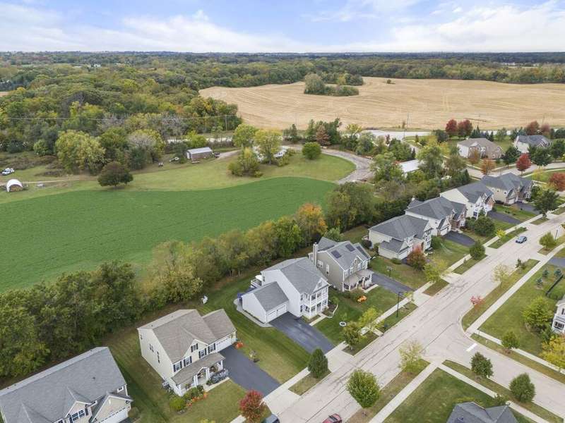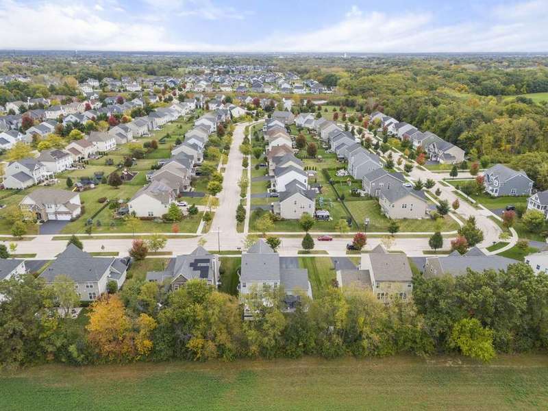 Nestled within the highly sought-after Bowes Creek Country Club and top-rated School District 301, this 4-bedroom, 3.5-bath home sits on a premium lot with no direct rear neighbors, offering tree-lined views and the kind of privacy that makes everyday living feel elevated. From the moment you step onto the welcoming front porch, you'll feel the warmth and attention to detail that define this home. Inside, hardwood floors flow throughout the main level, highlighted by crown molding and natural light pouring through expansive windows overlooking the serene backyard. The kitchen is the true heart of the home - designed for both gathering and entertaining - featuring 42-inch cabinetry, stainless-steel appliances, a large center island, and generous counter space. It opens to a spacious gathering room with a direct-vent fireplace, and a wall of windows completes the space, showcasing beautiful backyard and deck views. Step outside to your own retreat with a Trex deck, stamped-concrete patio, built-in firepit, and irrigation system, all surrounded by mature trees and peaceful views. With no direct rear neighbors, it's a serene place to relax or entertain. Upstairs, the primary suite feels like a private getaway with dual sinks, a soaking tub, a separate shower, and an oversized walk-in closet. Three additional bedrooms are generously sized, each with large closets - two are walk-ins. The second-floor laundry, a builder upgrade, adds everyday convenience. The finished basement expands your living space with a custom wet bar, built-in cabinetry, full bath, and flexible areas for entertaining, fitness, or relaxing. A 2.5-car garage and custom mudroom with built-in cubbies keep everything organized and out of sight. Located in one of Elgin's most desirable communities, this home combines refined finishes with a functional design and a setting that's both private and convenient - close to parks, walking paths, and everyday amenities. As part of the Bowes Creek Country Club neighborhood, residents enjoy easy access to one of the area's premier golf courses, scenic winter trails for snowshoeing, and an on-site dining option.