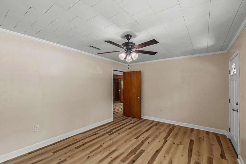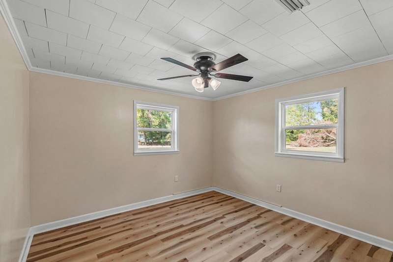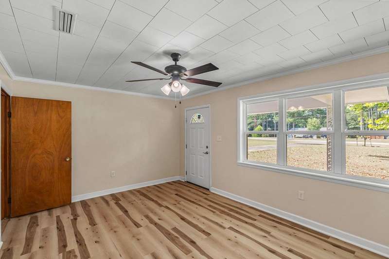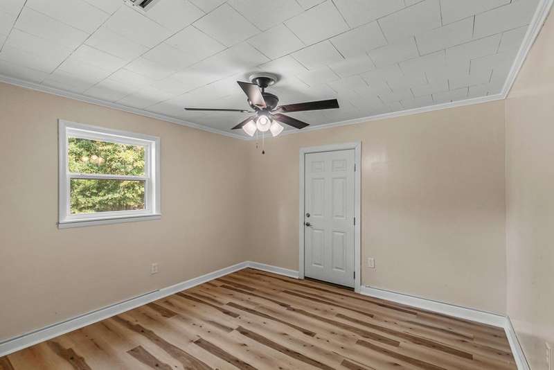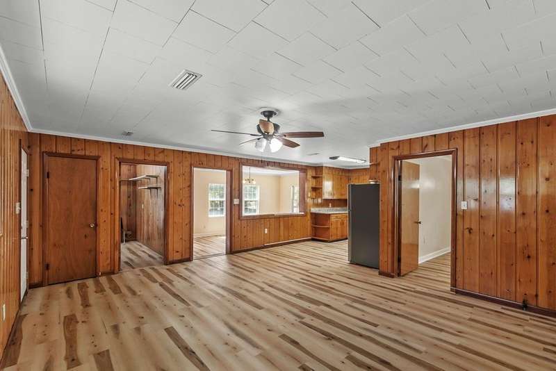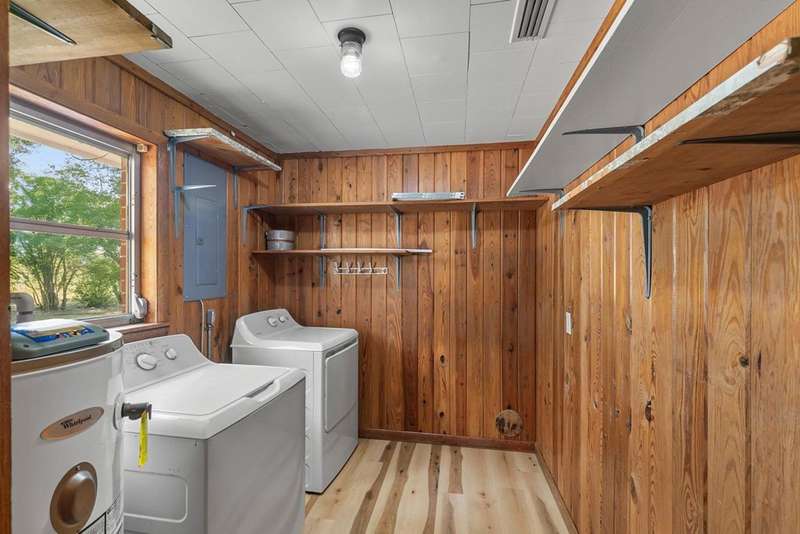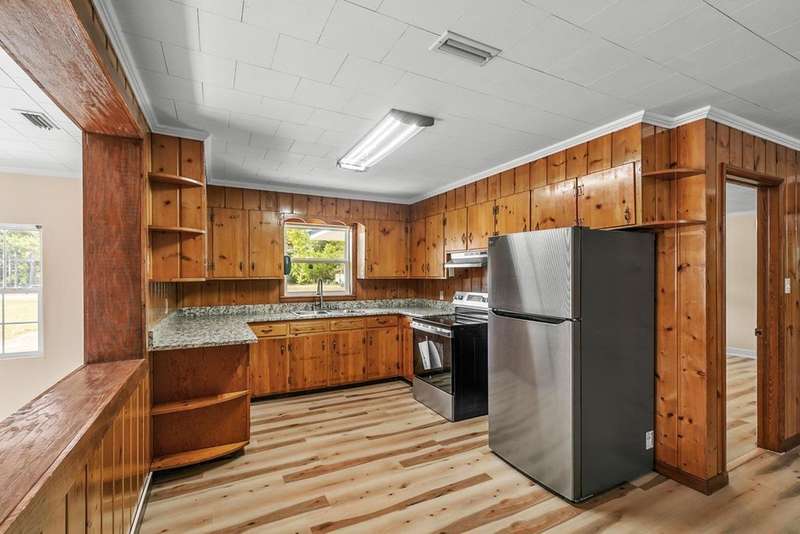 This charming 2 bedroom, 1 bath home offers 1,326 sq.ft. of living space along with 9.37 beautiful acres. Around the home you'll find a large open yard shaded by mature trees, while much of the acreage is nicely wooded, perfect for privacy, recreation or future possibilities. Inside, there is a formal living room and a cozy den, a formal dining room with natural brick walls, a spacious laundry room (washer & dryer included), kitchen with all new: sink, faucet, appliances, granite countertops and freshly varnished cabinets, beautiful hardwood paneling in the kitchen and den & hallway, the home has been extensively updated with: new vinyl plank flooring throughout, freshly painted walls, ceilings and new baseboards, all new windows (except one in the laundry room), new lighting inside and out, fully remodeled bathroom, much of the wiring has been updated with all new wall outlets & covers, new exterior doors across the back and the front door, plus a new interior door to the back bedroom, Exterior offers a freshly painted front porch & a warm welcoming front door, the eaves around the home have been replaced and freshly painted, There is a detached garage that would make a great workshop, garage updates include: new side door, freshly painted block exterior, freshly painted garage door with new glass panels, eaves around garage have been replaced and painted, roof on home & garage are approx 3 years old. Survey on file