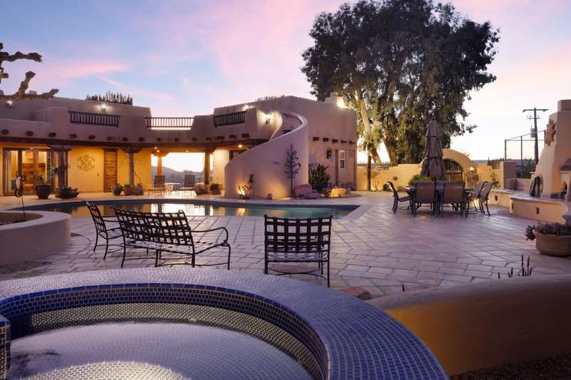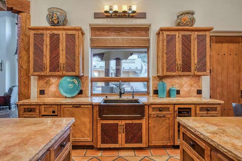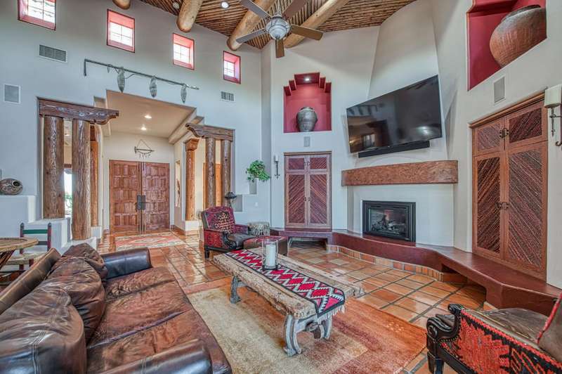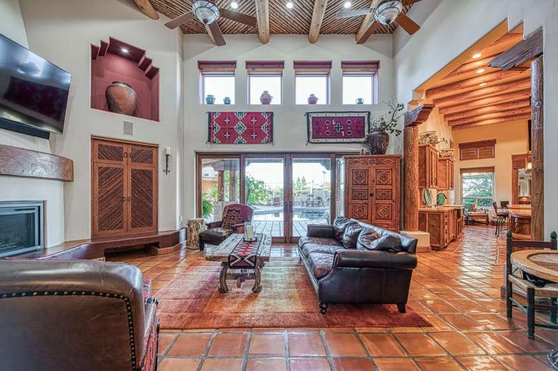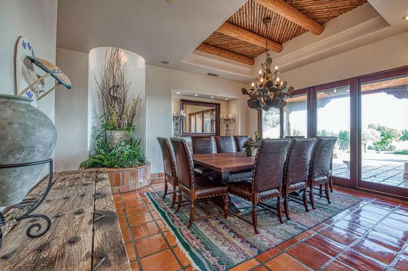 This extraordinary estate offers 360-degree views of Table Mountain, Sierra foothills, Friant Dam, & the San Joaquin Valley. A masterpiece of craftsmanship, it blends timeless finishes w/refined architectural detail. Saltillo tile flooring, hand-troweled walls, & soaring ceilings enhance the space. The living room features a gas fireplace, custom cabinetry, & double sliders opening to a resort-style pool. The formal dining rm has a built-in buffet & glass doors leading outside. The chef's kitchen boasts travertine counters, a Wolf range w/six burners, three ovens, a warming drawer, Subzero fridge, dual copper sinks, a mini wine fridge, ice maker, & two pantries. The primary suite offers a fireplace, sauna/steam shower, jetted tub, cedar-lined closets, & double sliders to the outdoors.A flexible living space serves as a soundproofed home theater/office/guest quarters w/courtyard access. A 1,600-bottle wine cellar w/a tasting area is accessible by elevator. The laundry room includes a Subzero fridge/freezer & a dog-friendly yard. The 3,000 sq. ft. garage holds up to 14 vehicles w/additional overhead parking. Amenities include tennis, pickleball, basketball, an in-ground jacuzzi, outdoor fireplace, BBQ, putting green, observation deck, & two independent guest homes w/a gym/shop. Secured by reinforced fencing, the estate also features owned solar, generators, a 5,000-gallon water tank, & a helipad. A rare retreat offering luxury, privacy, & premier amenities.