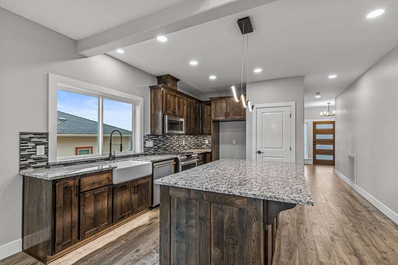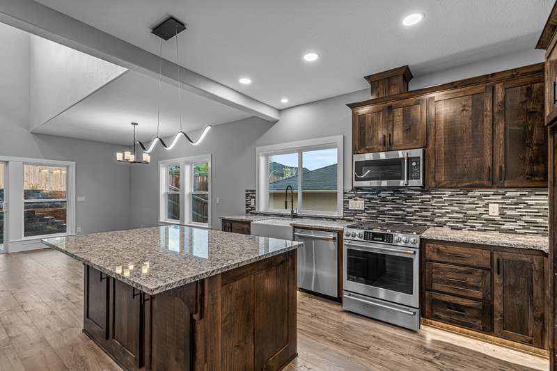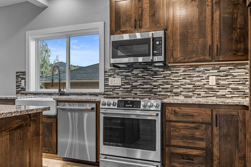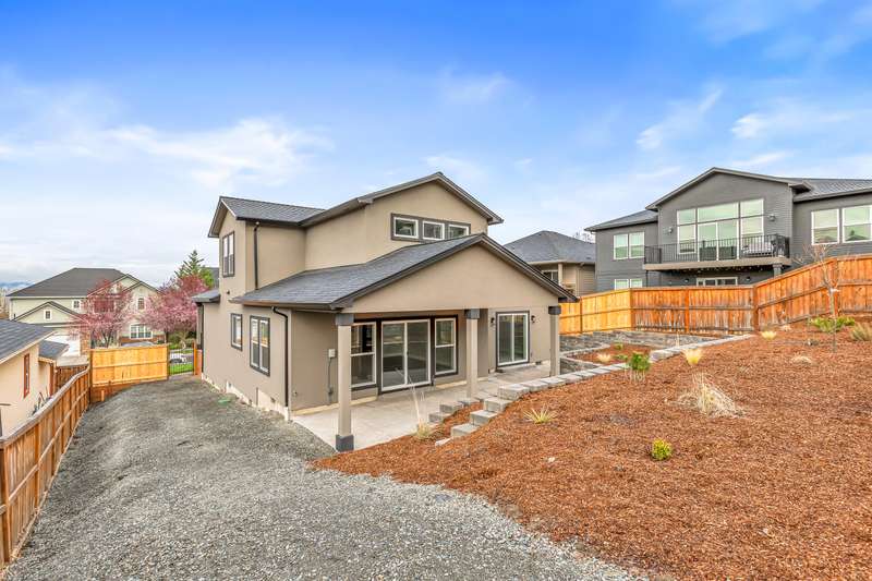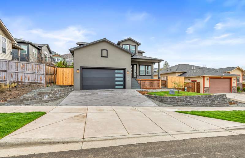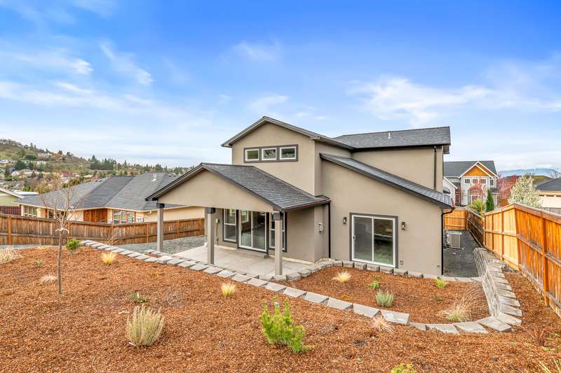 Stunning New Construction in East Medford's Extremely Desirable Vista Pointe! Incredible views and close to the huge newer park! Tons of upgrades and extras throughout. Excellent floor plan with true 4 bedrooms, huge primary suite on main level with extra bedroom on main level & 2 additional bedrooms upstairs with 2.5 bathrooms. Stunning, modern design with soaring ceilings that lead to an open-concept great room with gorgeous gas fireplace with stone surround & elegant mantle with lots of large windows & more. Huge gourmet kitchen boasts custom cabinetry, granite countertops, large kitchen island, high-end stainless-steel appliances, custom lighting, & more. The primary suite is amazing with custom tile shower, 2 sinks, walk-in closet, & coffered ceilings. Beautiful, private back yard with 2 terraced areas & fully landscaped. Incredible views of the surrounding mountains. This brand-new home is a MUST-TOUR!