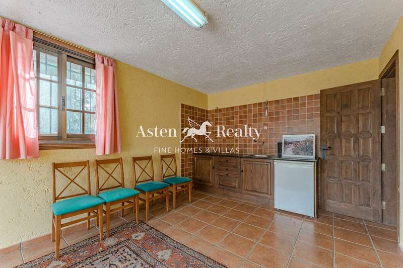 The other house is covered with living stone. It has 1 bathroom, 2 bedrooms, 1 kitchen and a heated swimming pool inside the house. Outside there is an area which can be converted into a solarium.