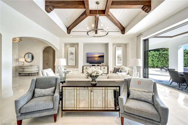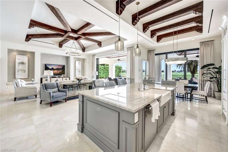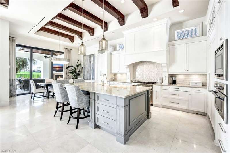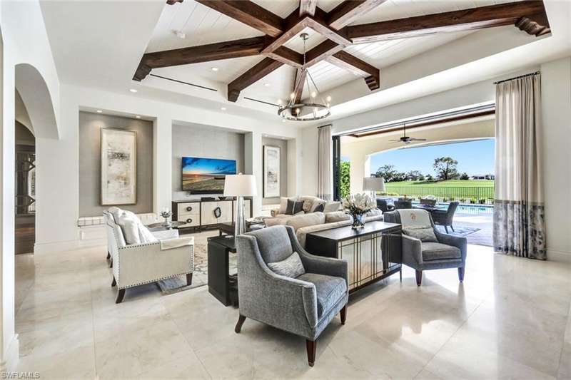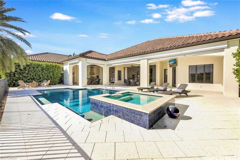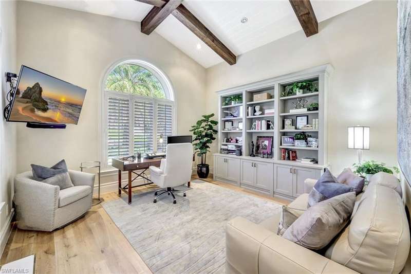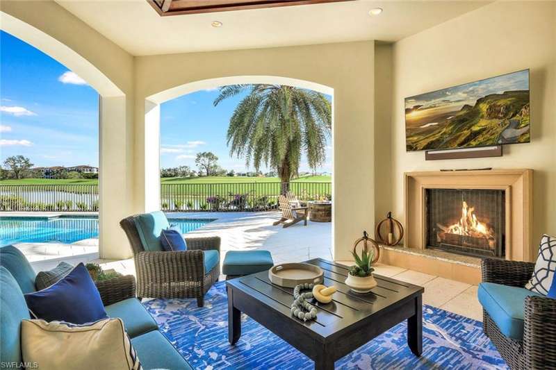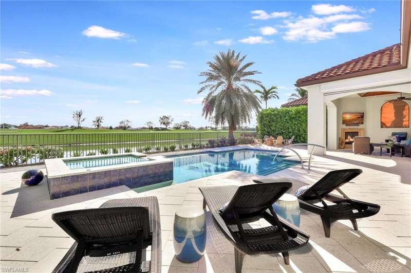 This exquisite custom estate welcomes you with sweeping southern lake views that transition seamlessly to the stunning fairways beyond. With 3 bedrooms, Den and 3.5 baths it is designed for both comfort and sophistication, the open-concept floor plan is impeccably decorated by a professional designer and features rich Pecky Cypress beams, stone and wood flooring, and a gourmet chef s kitchen. The outdoor living space is equally impressive, with a summer kitchen, fireplace, and sparkling pool protected by a state-of-the-art buzz off system all surrounded by lush, tropical landscaping that creates the sense of a private island retreat. The private office is flooded with natural light and includes custom built-ins, while the expansive owner s suite showcases breathtaking views and a spa-inspired bath. Every detail has been thoughtfully curated, from the whole-house generator and Icynene attic insulation to automatic storm and bug screens, Sonos sound system, security system, and pool w