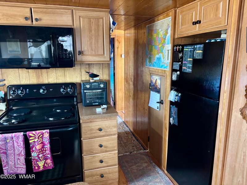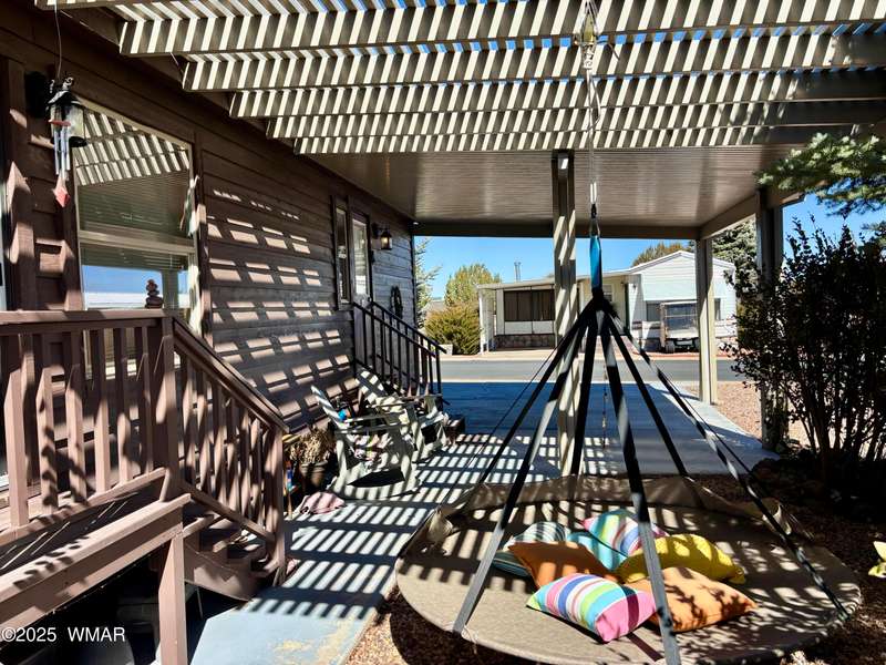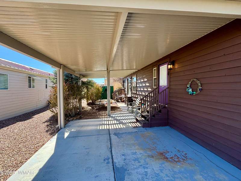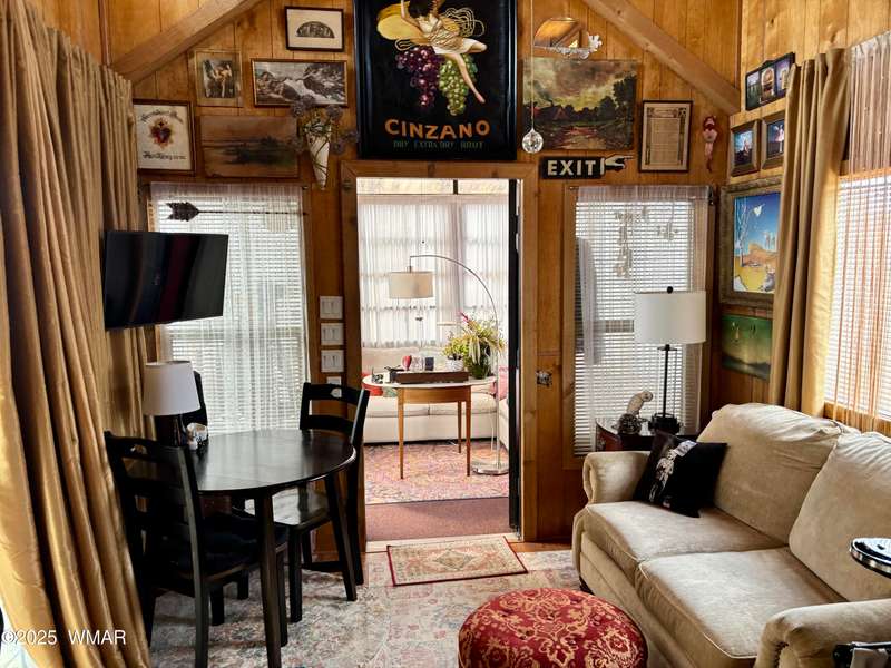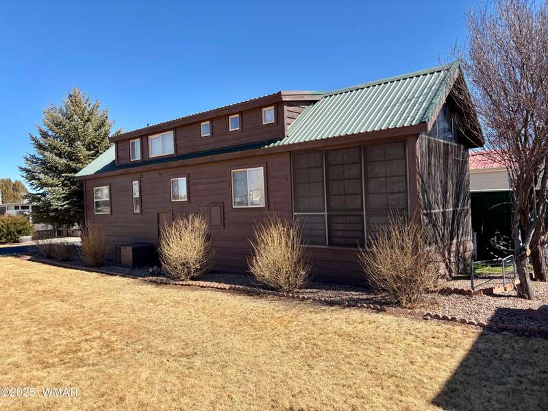 Come check this corner lot property out! This park model has beautiful cabin/wood features inside and out. Nice metal roof, shade canopies over the windows, and carport for your car and golf cart. Vaulted ceiling for an open feel and clerestory windows that allow for tons of natural light into the space. Loft above, A/C, and matching black appliances. Schedule an appointment today to see all that this property and Juniper Ridge Resort has to offer!