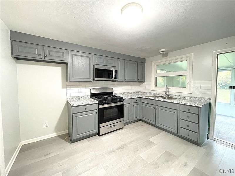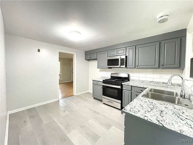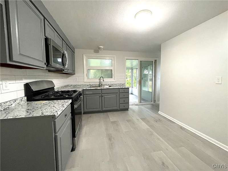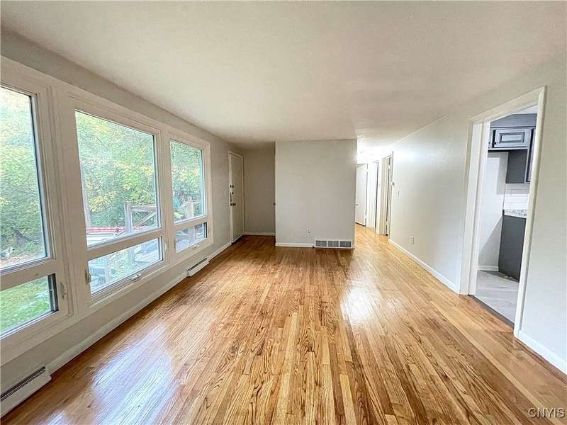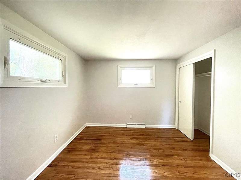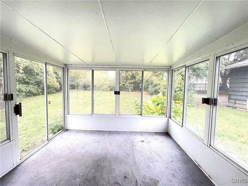 Discover the perfect blend of suburban tranquility and city convenience at this charming 3 bedroom 1 bath RANCH in Syracuse. Move-in Ready. Totally renovated kitchen with new appliances, refrigerator will be delivered and installed in November. Totally renovated full bath . Totally renovated partially finished walkout basement with ample open space. Windows annd screens replaced. Ideally situated in a quiet residential cul de sac, this property offers a comfortable living space with a welcoming atmosphere, ready for new owners to make it their own. Its prime location combines the benefits of a peaceful street with easy access to the best amenities the city has to offer. The home's layout flows seamlessly with generous windows that fill the room with natural light. Hardwood floor throughout. A private backyard with a large 3-season sunroom provides a perfect setting for outdoor activities, from relaxing to hosting gatherings with serene, natural environment. Close to city parks, athletic fields, Erie Canal Trails, State Parks, schools, universities, hospitals, shopping, highways, and healthcare facilities. This property is a great opportunity for those looking to settle in the area or to expand investment profolio.