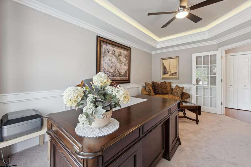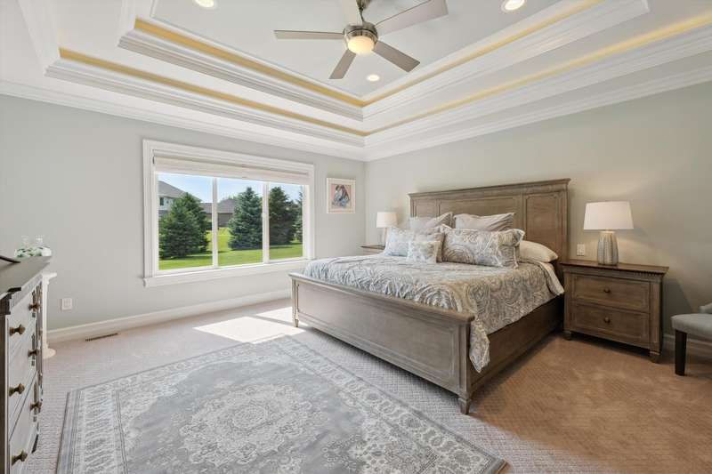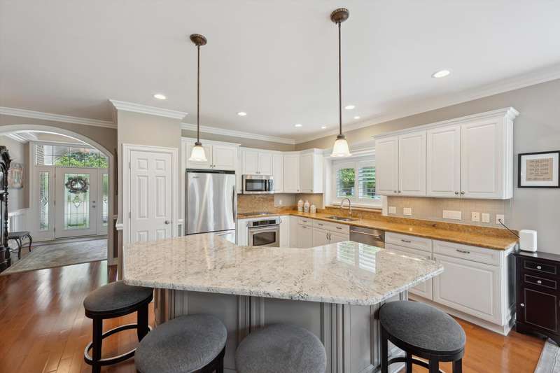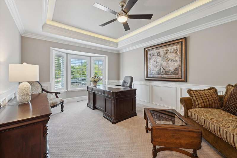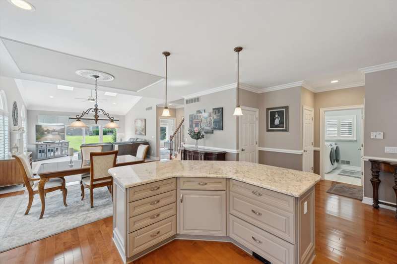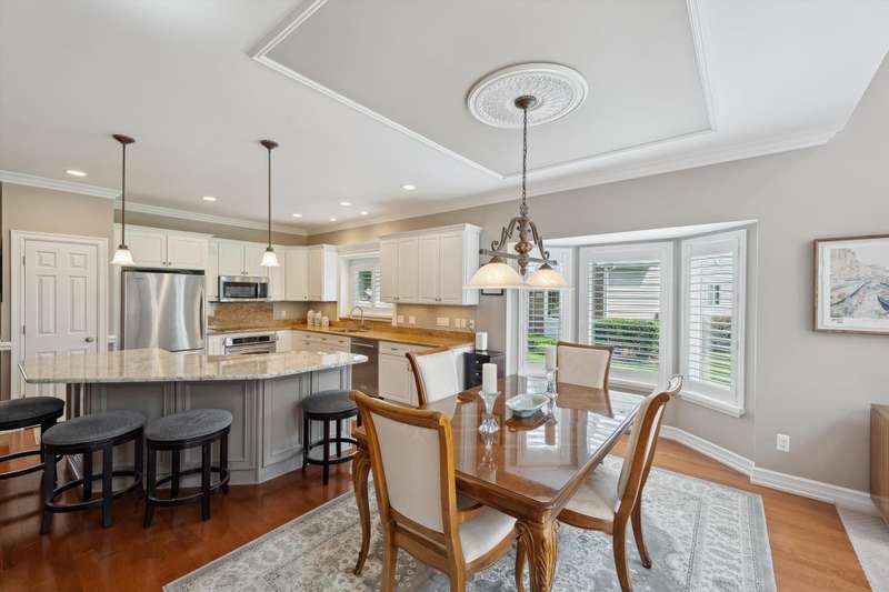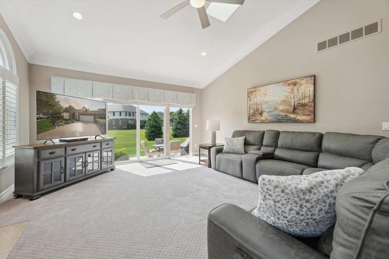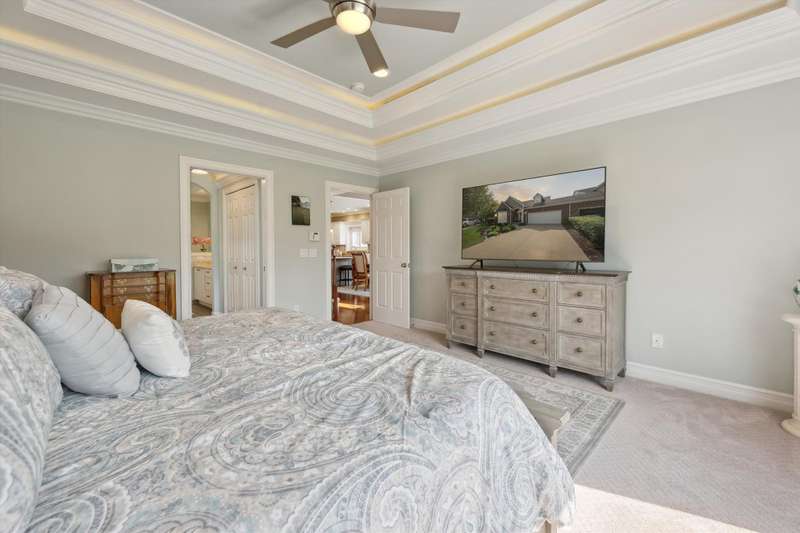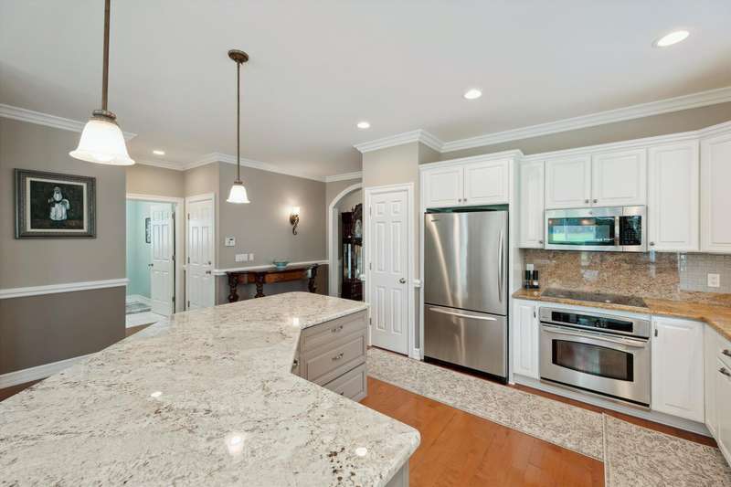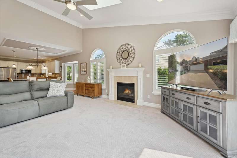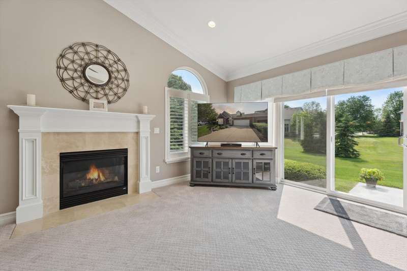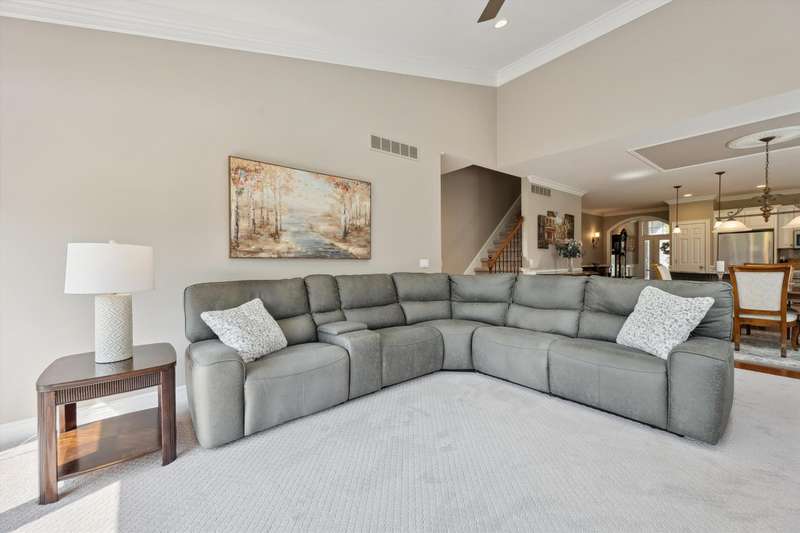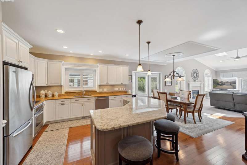 Welcome to a stunning, move-in-ready luxury condo nestled in an exclusive cul-de-sac just moments from the prestigious Prestwick Village Golf Club. This fully updated 3-bedroom, 3.5-bath residence blends timeless elegance with top-tier finishes and thoughtful design throughout. This home is breathtaking, with an open-concept layout featuring solid maple hardwood floors, oversized architectural moldings, and new LED lighting with state-of-the-art touch dimmers. The main floor primary suite boasts a unique double-layer ceiling treatment, jetted soaking tub, barrel ceiling, frameless Euro glass shower with built-in seat, and luxurious finishes that rival a high-end spa. The kitchen is a showstopper with an expansive granite island, top-of-the-line Merillat full overlay cabinetry, and all the functionality you need for entertaining or everyday living. Enjoy designer details around every corner—new shutter window treatments, barrel ceiling in the powder room, oversized base and casing moldings, and quality carpet throughout. Every electrical outlet and switch have been upgraded, and new exterior windows ensure energy efficiency and modern appeal. The finished basement offers remarkable versatility, complete with a full kitchenette featuring an oversized stainless steel sink and disposal, butler’s pantry with undercounter refrigerator, a full bathroom, and over 1,000 sq ft of built-in shelving for unmatched storage. The home also features a central vacuum system for convenience. This meticulously maintained home is the perfect blend of sophistication, comfort, and turnkey luxury. Don’t miss your opportunity to experience elevated condo living—schedule your private tour today!