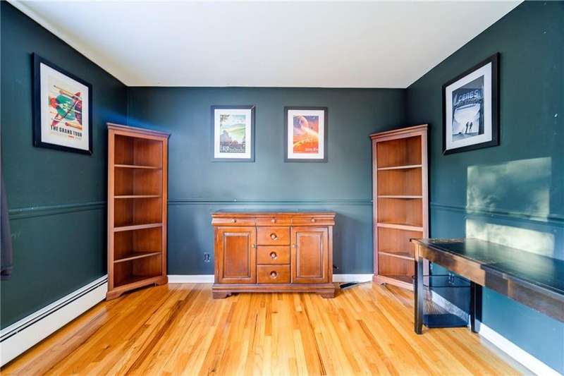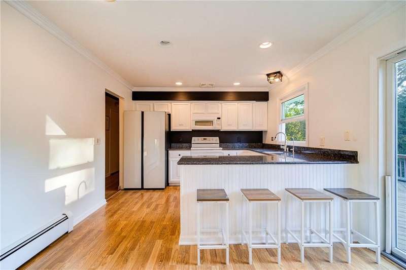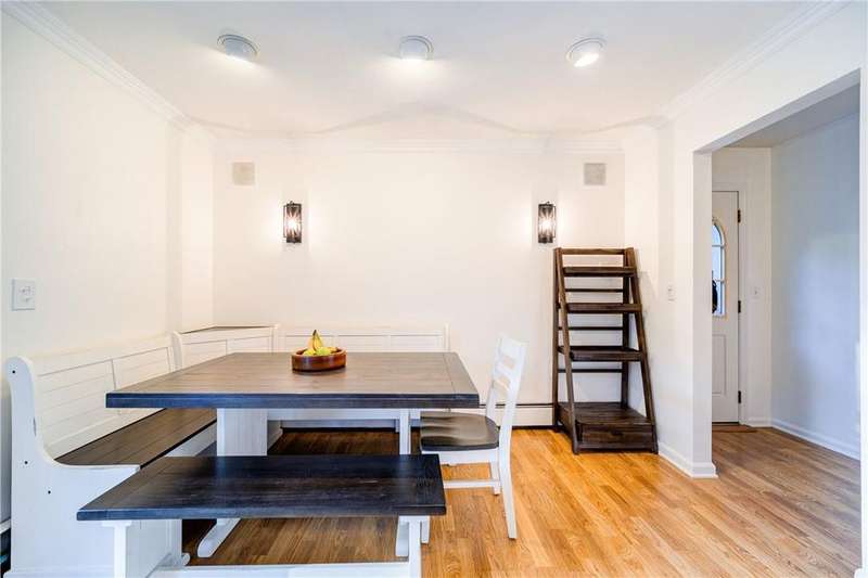 Price improvement! Back on the Market! Don't miss the opportunity to make this exceptional property yours. This home features a spacious open kitchen that is truly the heart of the home. Flooded with natural light, it boasts luxurious granite countertops and rich wood floors, perfectly balanced with ample cabinet space to cater to all your culinary needs. Whether you're a gourmet chef or a casual cook, this kitchen is designed for both culinary delight and vibrant family gatherings.Other features include a unique converted dining area that has been transformed into a luxurious entertainment space, complete with a custom bar, recessed lighting, and dreamy tones that set the perfect mood for gatherings.The sunken living room is a cozy retreat, highlighted by a large bay window, a charming brick fireplace, and elegant crown molding.The large master bedroom features custom built-in closets, ensuring ample storage and organization. Tiled master bath has tub/shower and main bath is beautifully tiled and has modern block glass detail shower.The property extends its charm outdoors with a landscaped yard, adorned with mature trees and perennials that provide a serene and inviting atmosphere. Enjoy alfresco dining or relaxing in the fenced-in yard with an oversized deck, ideal for entertaining and enjoying the outdoors.Additional highlights include custom easy-clean fold windows, a tiled entranceway, and custom lighting throughout the home. The full, basement offers versatile space for additional living or storage needs. This home is a perfect blend of comfort and sophistication, designed for both relaxing and entertaining. Come and experience the ideal setting for making lasting memories. Additional Information: Amenities:Storage,HeatingFuel:Oil Above Ground,ParkingFeatures:1 Car Attached,