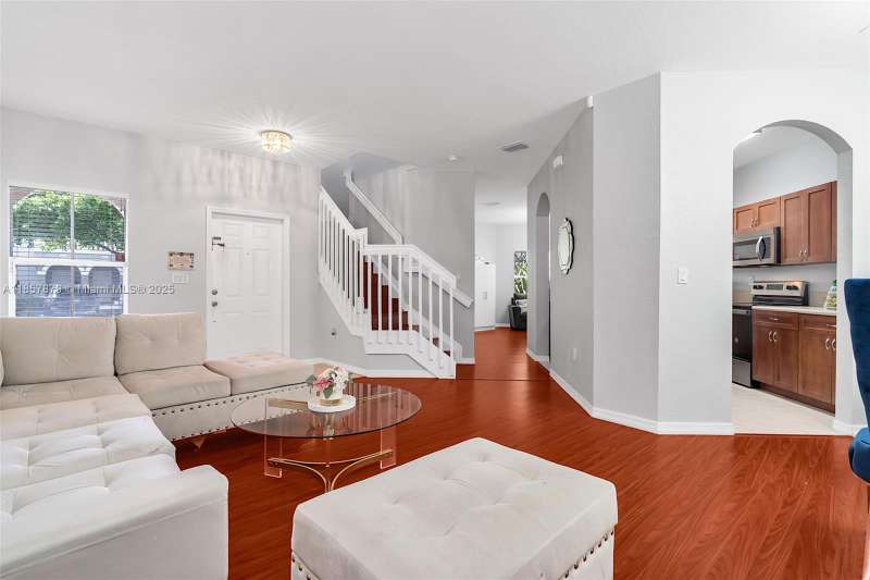 Beautiful and spacious corner unit townhome in the highly sought-after gated community of Vizcaya in Miramar! This 3 bedroom, 2.5-bath home offers a spacious layout with abundant natural light, neutral finishes tile and laminate flooring throughout. Upstairs features generously sized bedrooms and comfortable primary suite with a walk-in closet and private bath. A gated community with 24/7 security, along with access to amenities like a pool, fitness center. Conveniently located near mayor highways, shopping, dinning, and top-rated schools.