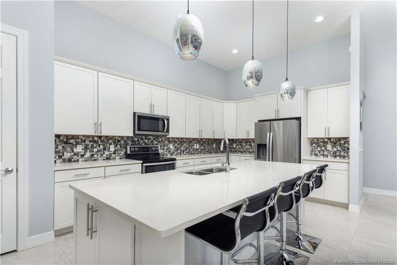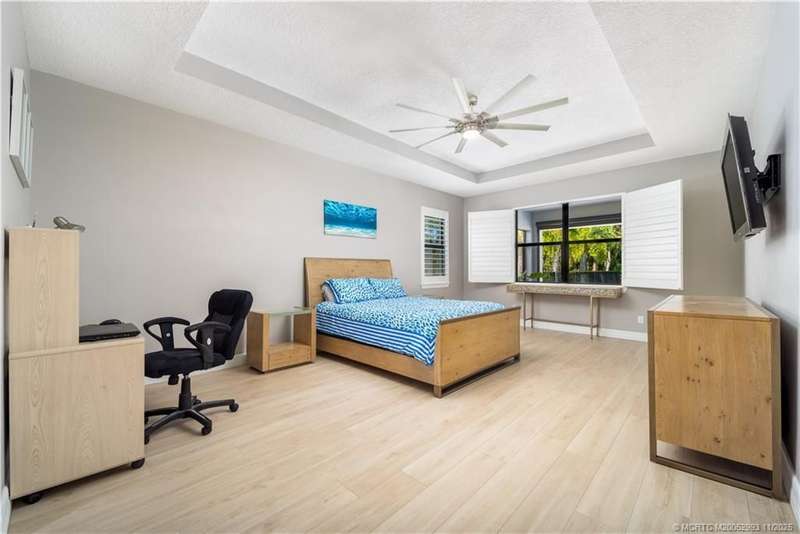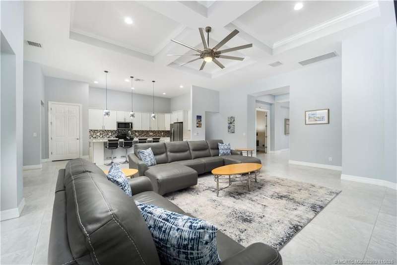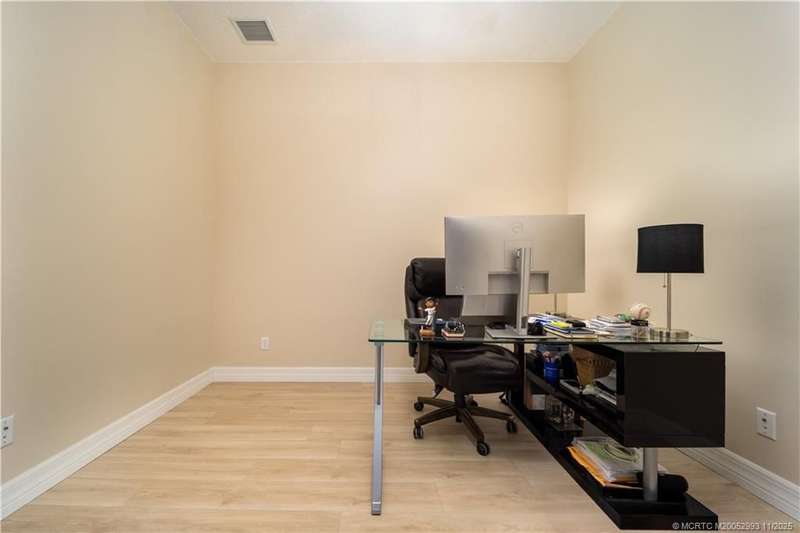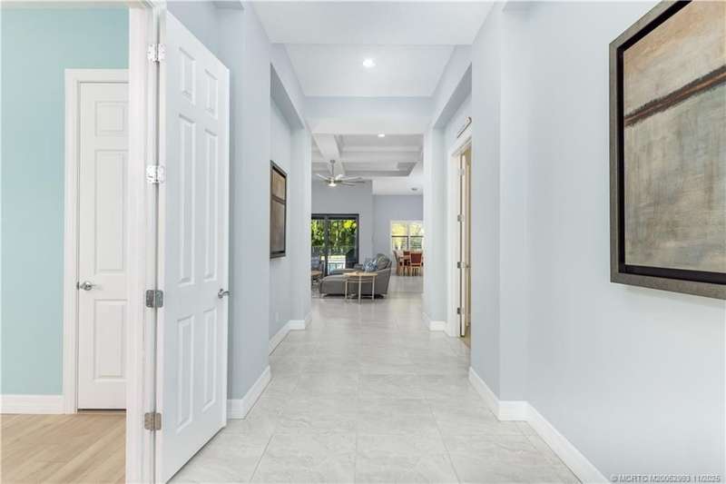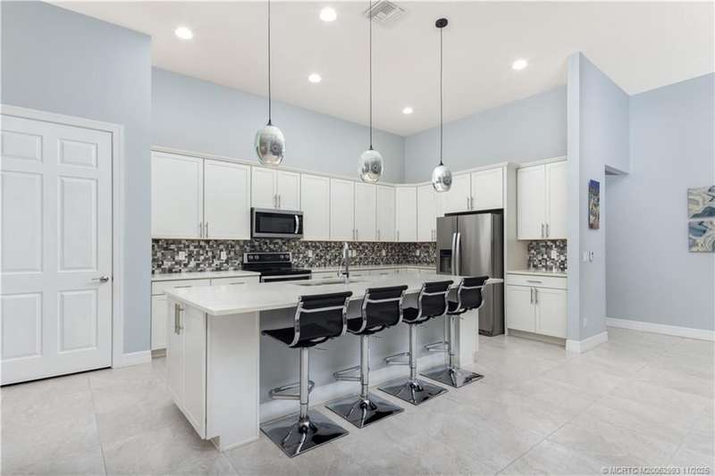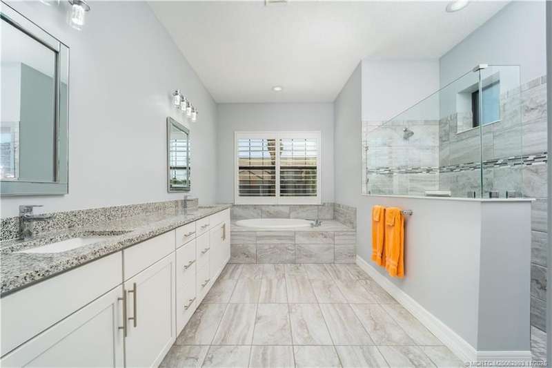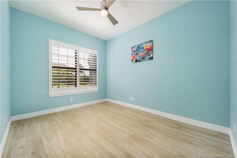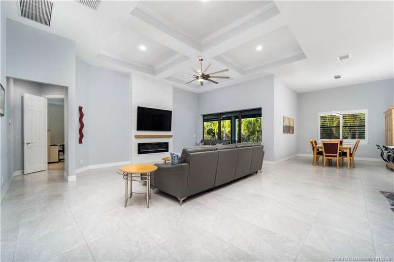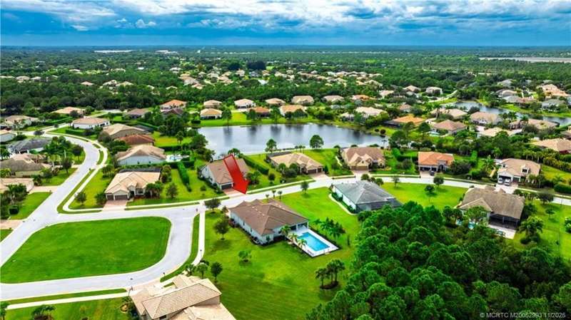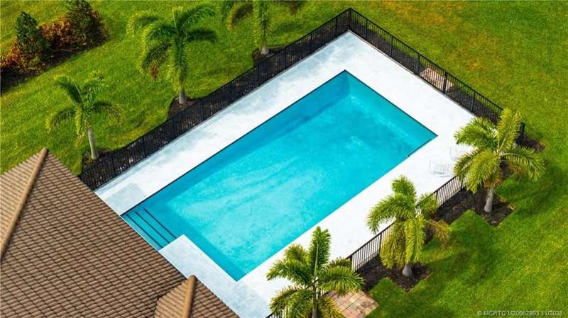 Luxury liv??ng me?ts tim?l????? ?l?gance in this stunning Clubv??ew fl?or plan, nestled on a rare .57-acre corner lot in the exclusive Palm City community of Copperleaf. Meticulously maintained and designed for both comfort and sophistication, this 3,089 sq. ft. home offers 4 bedrooms plus a den and office-a possible 6-bedroom layout-with 3 full baths. The living room features a cozy fireplace, and the kitchen showcases white cabinetry, quartz countertops, and an open layout perfect for gatherings. The primary suite includes dual walk-in closets and a beautiful bathroom with a large step-in shower and separate soaking tub. Plantation shutters throughout add a refined touch. Enjoy your private retreat with a heated oversized lap pool, marble-paver patio, lush landscaping, 3-car garage, and full impact windows and doors. Copperleaf offers resort-style amenities including tennis, pickleball, clubhouse, pool, fitness center, playground, and walking trails.