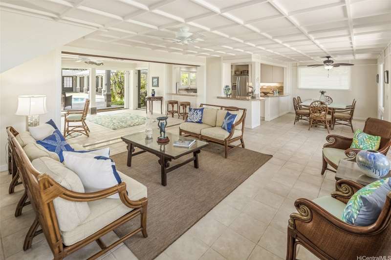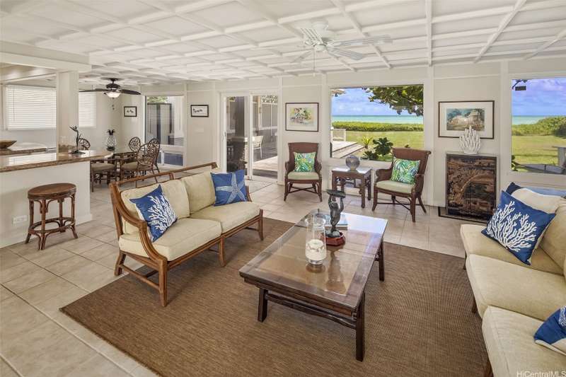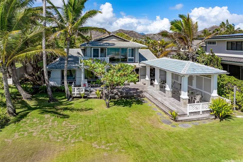 Best value on Kailua Beach!!! This spacious 4 bedroom 3 bath kama'aina style home is ready for occupancy! Two primary suites - one which takes up the entire 2nd floor with a private balcony overlooking the expansive yard going out to the beach. Large kitchen with easy access to the pool area and to the very spacious beachside covered lanai. Two impressive secured front gates open to a covered walkway next to the tropical pool and waterfall. Enter the house into a spacious living and dining area all with ocean views. Located on one of the premier beachside streets with a desirable cul-de-sac location, Namala Place features sidewalks and underground utilities. Located on beautiful Kailua Beach with approximately a 2.5 mile white sand stretch. This choice piece of rarely available beachfront property is a must see.