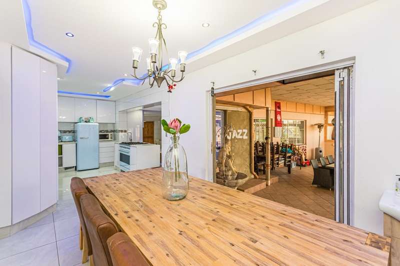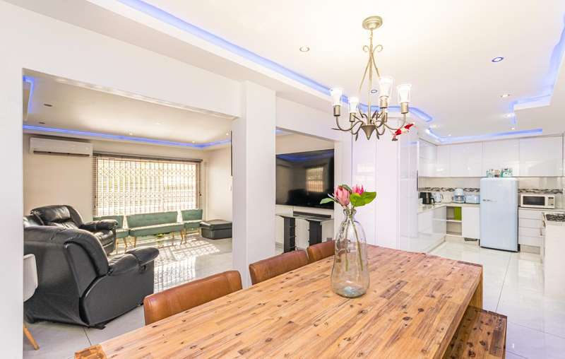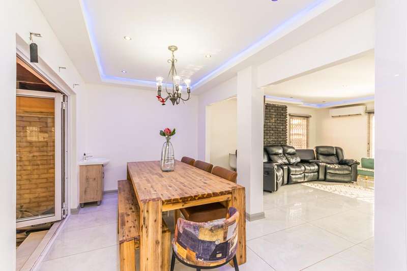 Welcome to this family home, designed for comfortable living and effortless entertaining. Newly renovated kitchen, dining and lounge... the rest provide you the opportunity to design into your own style... Living & Entertaining Modern reception area which flows into lounge that is open with your dining and kitchen Designer kitchen featuring quartz countertops, breakfast nook, prep bowl, gas hob, and electric oven Full separate laundry and scullery tucked out of sight Spacious dining room with stack-away doors for seamless indoor-outdoor flow TV lounge plus a separate entertainment room ?Çô ideal for a home cinema or games room which opens up with your spacious outside entertainment, built-in braai and swimming pool Bedrooms & Bathrooms Three bedrooms, all located in a private wing with warm laminate flooring... bedrooms one side and entertainment at the back Main bedroom includes mirror-finish walk-in cupboards and an en-suite bathroom with shower, basin, and toilet Main bathroom includes bath, toilet and basin... come put your personal stamp on the bedrooms and bathrooms... at this price you can do something beautiful. Bonus Features All-season indoor pool ?Çô swim and relax all year round Outside staff accommodation adds convenience and value Security: 16-zone CCTV and alarm system Secure and private, yet perfectly connected Prime Location Situated close to top local and private schools, both English and Afrikaans. Easy access to major routes, shopping centres, and essential amenities Do not miss out on this home... your love is wished for here. Book your private viewing today!