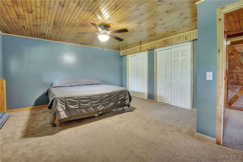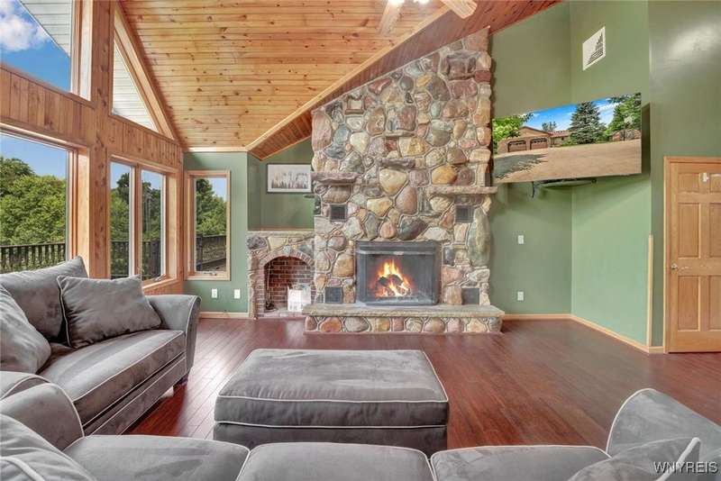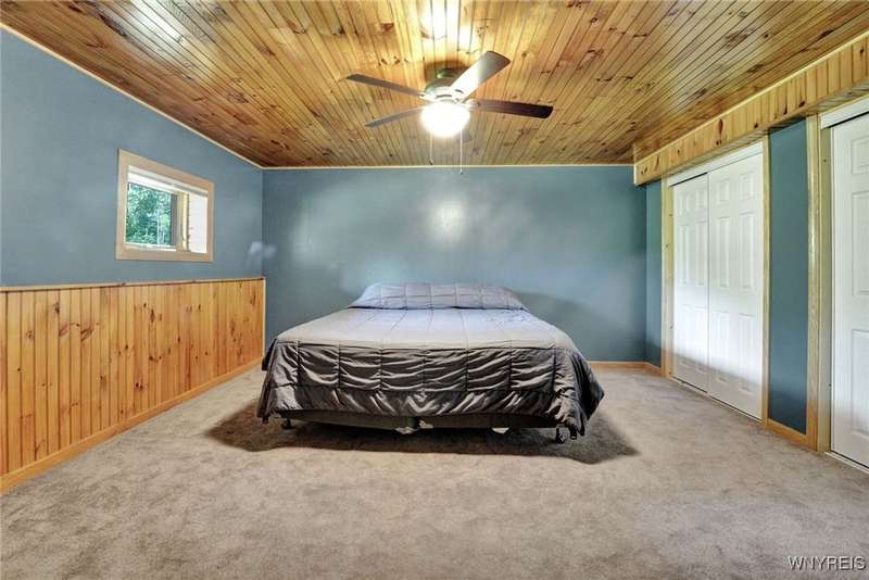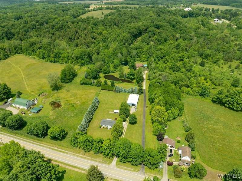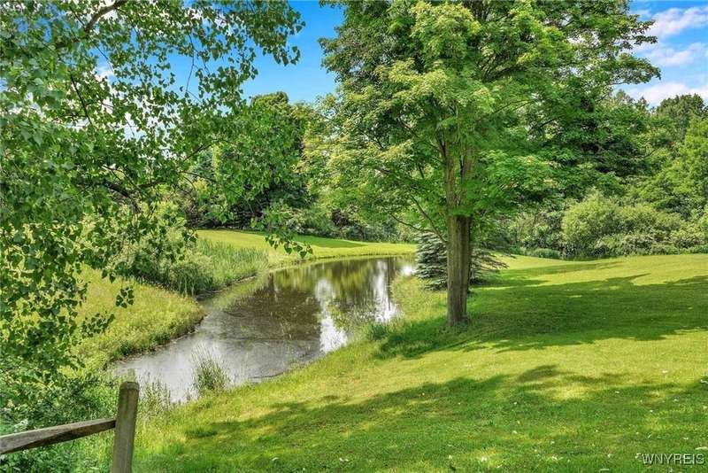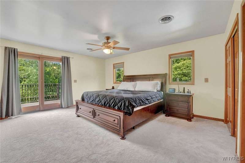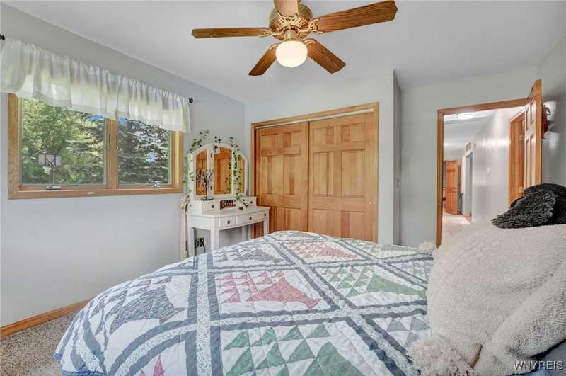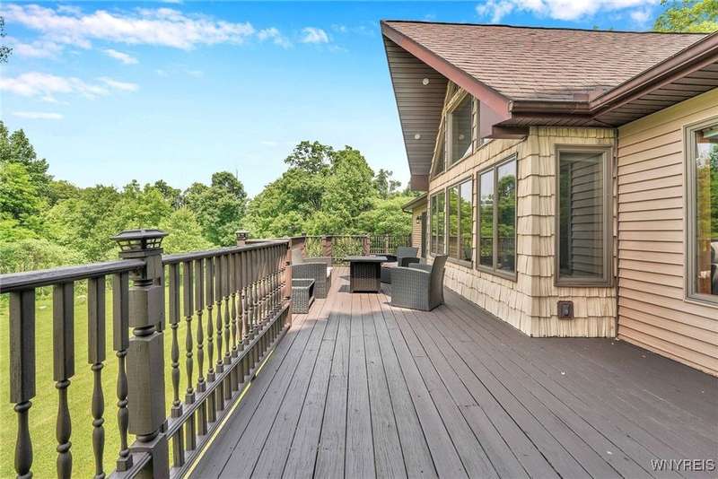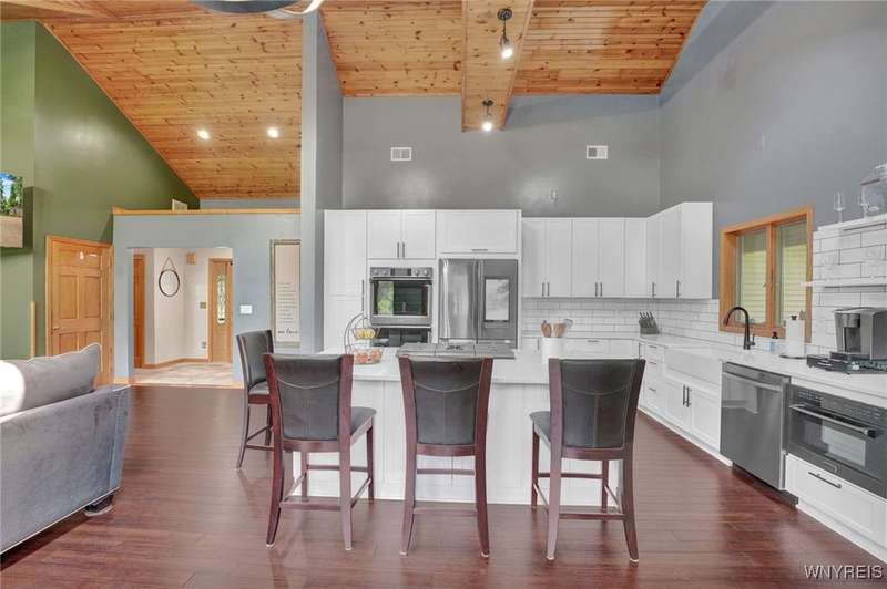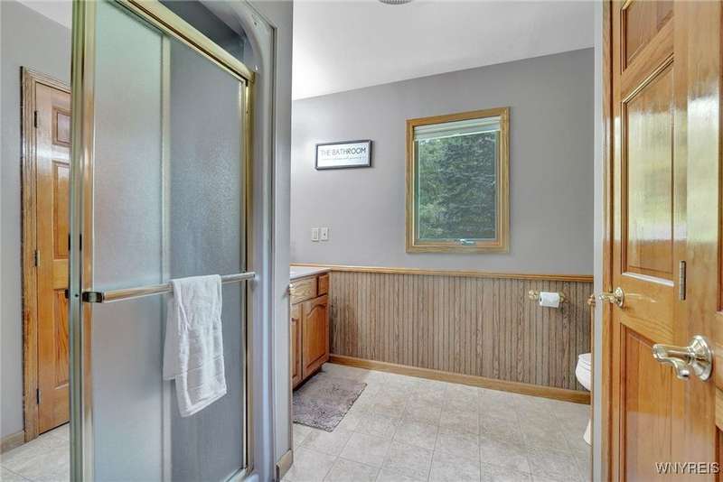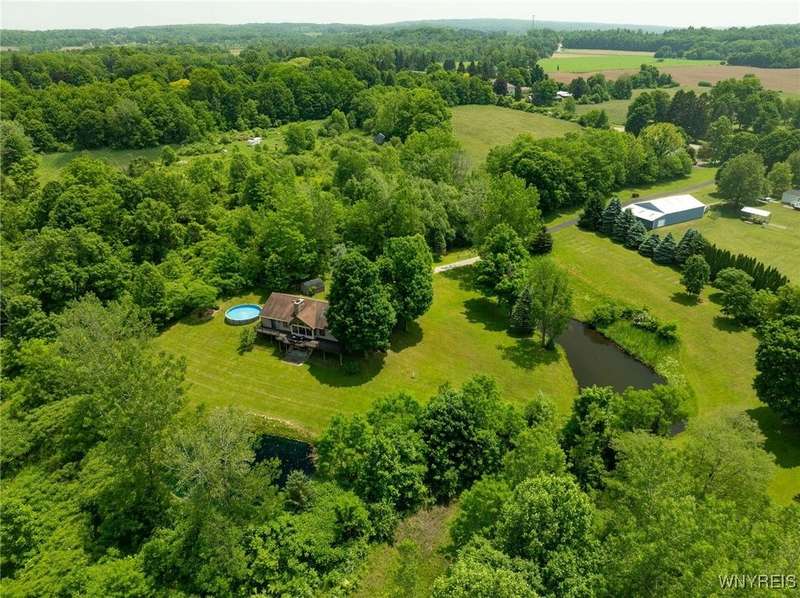 A long blacktop/concrete driveway leads to this stunning private oasis! Two ponds, 18+acres of privacy, woods and wonderful views from the large deck. Step inside to the front foyer which leads to the great room with cathedral ceilings and stone fireplace. A beautiful newly installed custom kitchen features a large center island with quartz countertops and appliances! The kitchen/dining/great room combo has new bamboo flooring & new lighting. The primary bedroom has brand new carpet and its own full bath. The lower-level walk out basement adds a rec room with bar, third bedroom and a full bath. Radiant floor heat on both floors and it has been recently serviced. New whole house generator just installed so no worries if the power goes out. First floor laundry, on demand hot water, central air, and the deck was recently stained. This lovely hillside ranch has much to offer and so many updates.