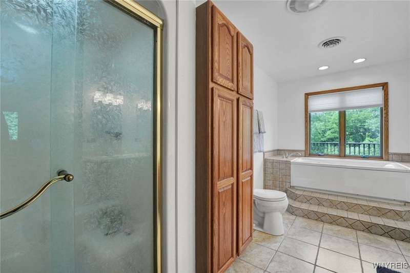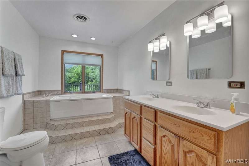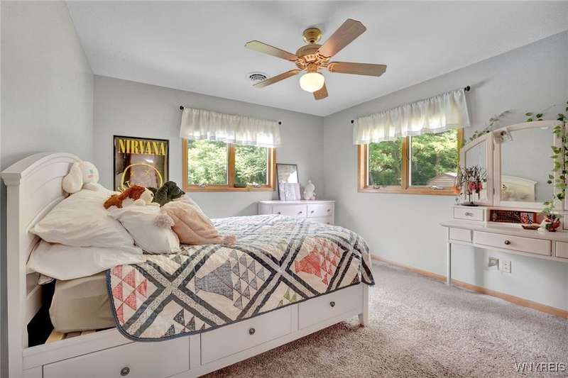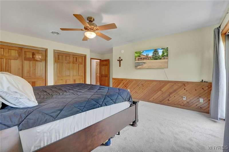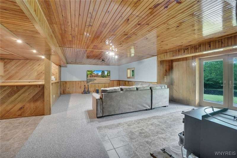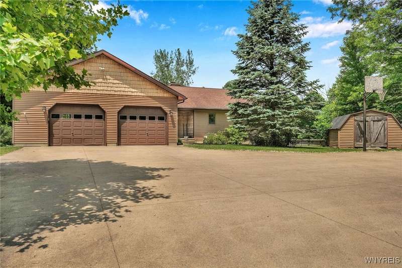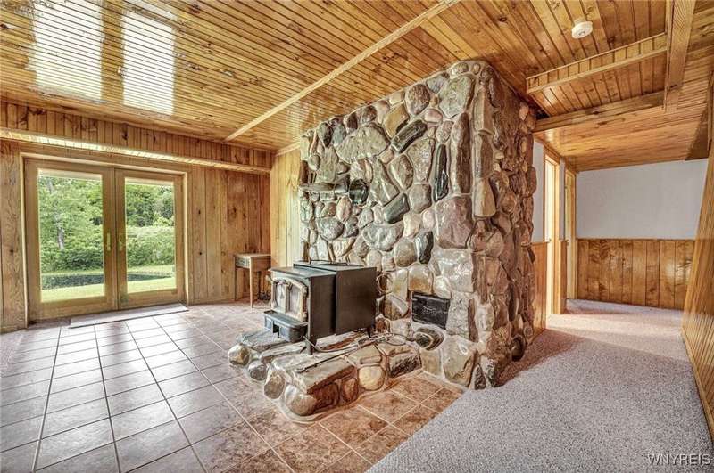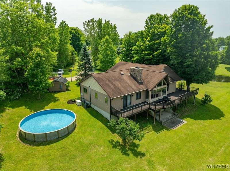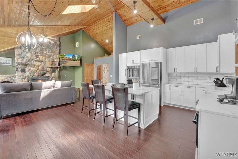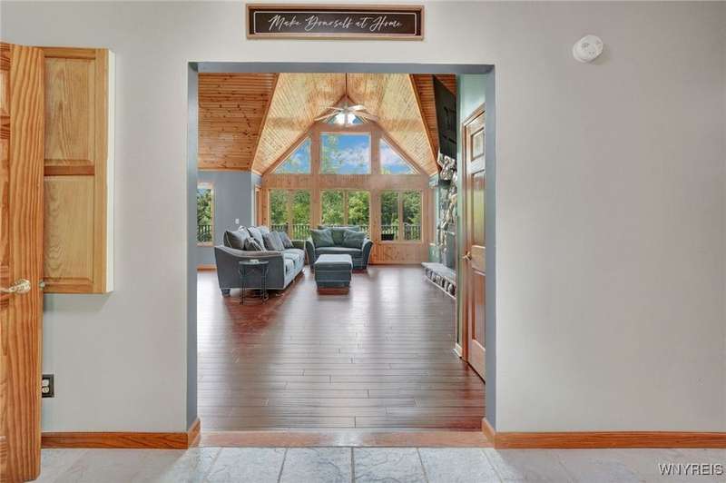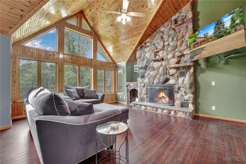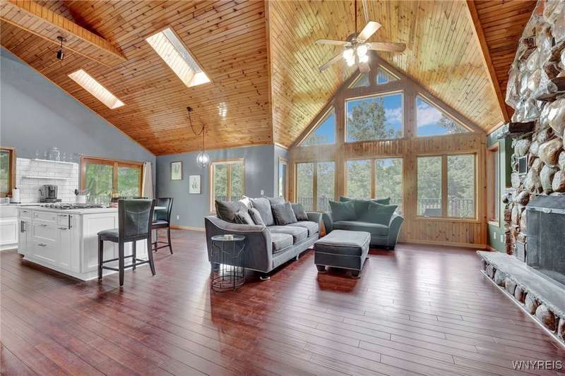 A long blacktop/concrete driveway leads to this stunning private oasis! Two ponds, 18+acres of privacy, woods and wonderful views from the large deck. Step inside to the front foyer which leads to the great room with cathedral ceilings and stone fireplace. A beautiful newly installed custom kitchen features a large center island with quartz countertops and appliances! The kitchen/dining/great room combo has new bamboo flooring & new lighting. The primary bedroom has brand new carpet and its own full bath. The lower-level walk out basement adds a rec room with bar, third bedroom and a full bath. Radiant floor heat on both floors and it has been recently serviced. New whole house generator just installed so no worries if the power goes out. First floor laundry, on demand hot water, central air, and the deck was recently stained. This lovely hillside ranch has much to offer and so many updates.