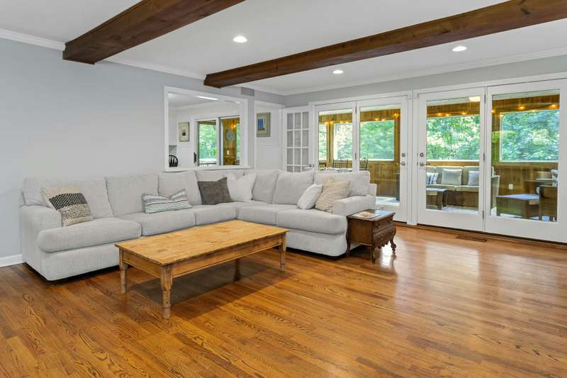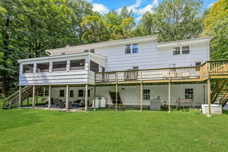 Welcome Home to Mimosa Estates, one of Ridgefield's most desirable neighborhoods just minutes from the vibrant town center with its shops, restaurants, cultural venues, and theaters. Residents here enjoy incredible community amenities, including a pool, tennis and basketball courts, a clubhouse, a playground, and sports fields-all just steps from home. This spacious residence is privately situated on a quiet property and offers a thoughtful floor plan filled with natural light. The inviting living room features exposed beams, a fireplace, and seamless access to the screened porch--perfect for indoor/outdoor living. The eat-in kitchen includes Corian counters, a breakfast bar, and pantry, while the adjoining dining room makes entertaining easy. A bright family room with bay window, laundry, and powder room complete the main level. Upstairs, five bedrooms await, including a generously sized primary suite with wall-to-wall closets and full bath, and four additional bedrooms sharing an updated hall bathroom. The finished walk-out lower level offers a rec room, access to the backyard, and a deck above for gathering or relaxing. The level, manicured yard is bordered by town open space, providing a wonderful setting for play or entertaining. And an automatic, whole-house Generac generator to boot! All this just minutes to Ridgefield's charming Main Street, theaters, parks, and commute routes to NYC and lower Fairfield County--truly the best of town and country living. Welcome Home!