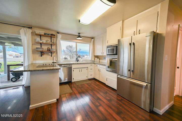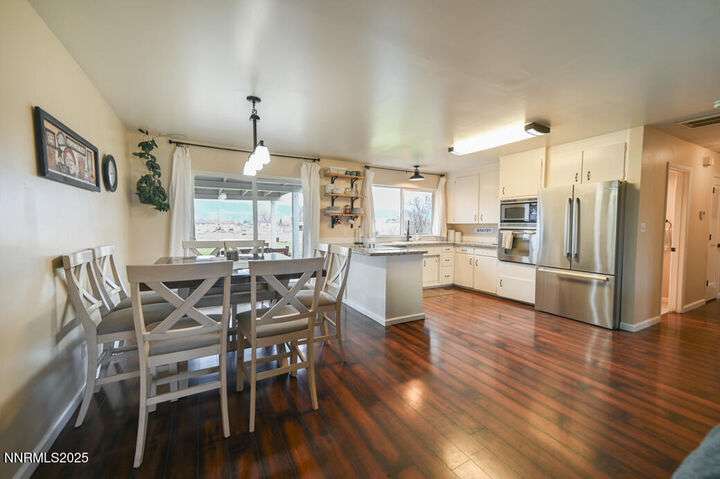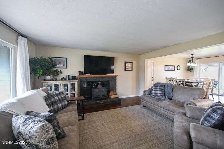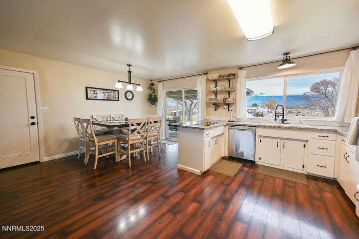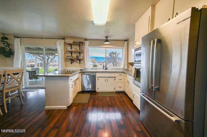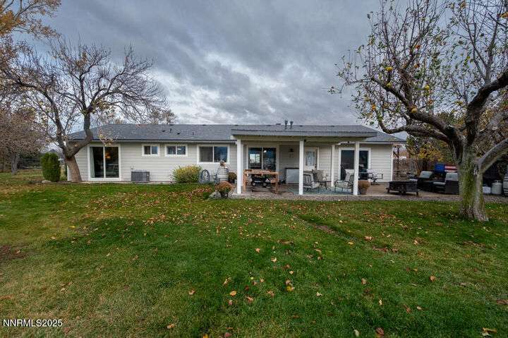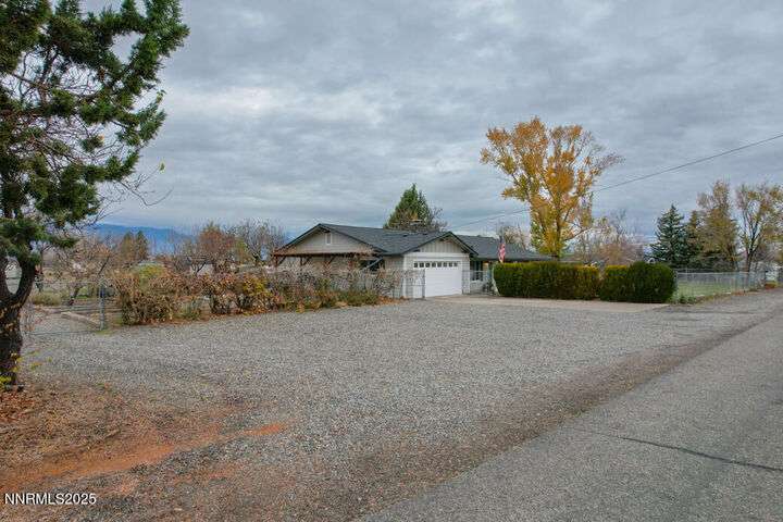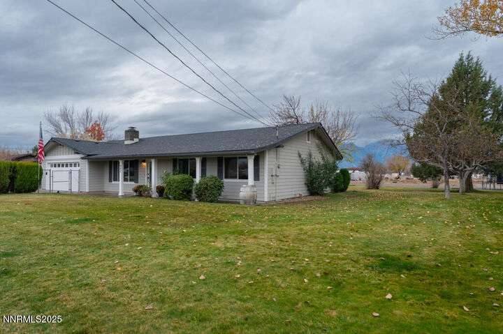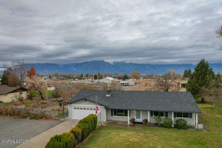 3 Bedrooms + Office | 2 Bathrooms | Approx. 1.63 Acre Horse Property | 2-Car Garage with Custom Cabinets & Extra Electric. Experience country living with in-town convenience! This beautifully maintained home offers an open floor plan and an additional office perfect for working from home. The attached 2-car garage includes custom cabinetry and upgraded electrical—ideal for hobbies or storing your golf cart. Enjoy breathtaking views of Jobs Peak and the Sierra Nevada mountains from your own backyard oasis. The landscaped grounds feature 15 fruit trees, lilacs, grapes, garlic, and a colorful mix of flowers, creating a peaceful and productive garden retreat. This fully fenced 1.63-acre horse property includes a pole barn for hay or off-road vehicles, a tack room/ extra storage, and a chicken coop, offering plenty of space for animals, equipment, or storage. New roof in 2024, new siding and windows and doors in 2022. Located just minutes from Carson Valley Golf Course, Carson Valley Health, Carson Valley Veterinary Hospital, and local restaurants and shops — you'll love the perfect balance of rural tranquility and town convenience. Bring your horses, toys, and golf cart — there's room for it all at 942 Riverview Drive!