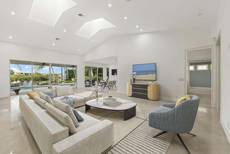 Just reduced below appraised value! WIDE OPEN WATERFRONT w/southern exposure. Minutes to the intracoastal. No fixed bridge with easy ocean access. Views of nature sanctuary. Contemporary 4BD/4BA one story villa. Open palette to express your own design. Primary suite and VIP suite boast tranquil waterfront views. Flooded w/natural light. Large lushly landscaped PRIVATE location w/3 car garage. Wide circular Chicago Brick driveway. Open great room floor plan w/vaulted cathedral ceilings. Downsview kitchen w/marble countertops and stainless steel Miele appliances. Crema marfil floors. Split floorplan. Large heated pool w/ coastal slate patio entertaining areas. Dock w/24,000 lb boatlift. Floating dock for add'l water toys. Summer kitchen. Sports or golf membership available.