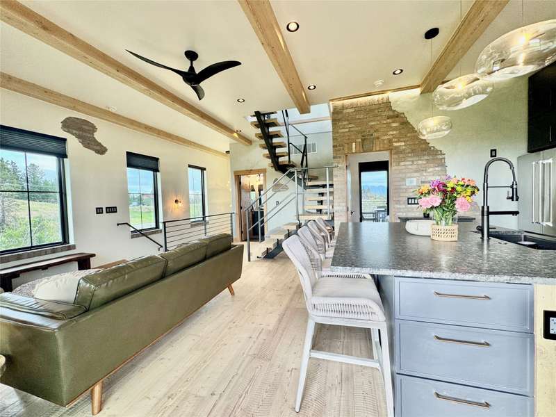 Hidden Waters retreat offers 3 unique dwelling spaces, each offering full kitchen and living areas as well as access to Hidden Waters Private Pond. Just 28 miles from Glacier National Park, these homes are the perfect "Gateway to Glacier." First, the Urban Glacier Chalet blends modern industrial design with rustic charm. The open-plan home features a gourmet kitchen and a master suite with views of Big Mountain and Glacier National Park. The Prime Time Condo is a stylish and charming space with custom steel floors, exposed brick, and a flexible layout. It includes a queen-sized bedroom and a hidden Murphy bed for extra guest. Lastly, inspired by a classic mountain fire tower is the Glacier Alpenglow Lookout. This three-story home offers breathtaking panoramic views. The top-level lounge provides a unique vantage point, while the main floor opens to a spacious wrap-around deck. Two separate bedrooms and multiple living areas make it perfect for larger groups.