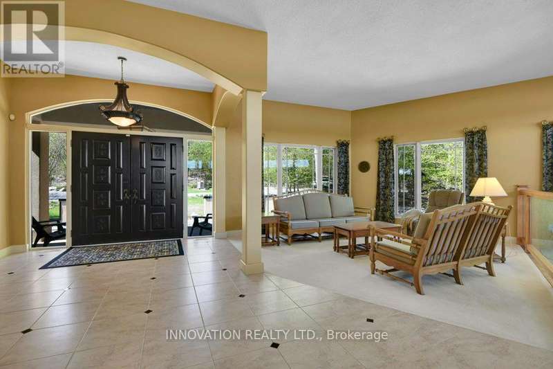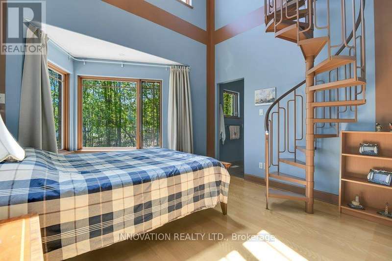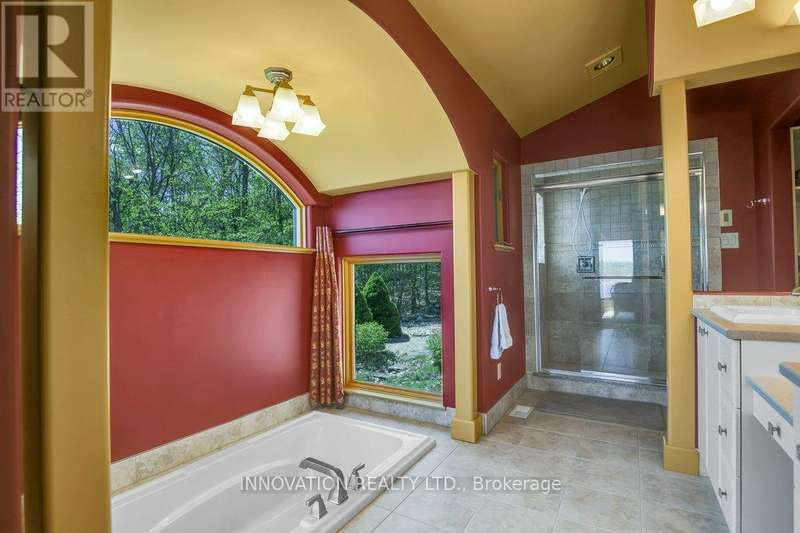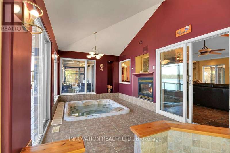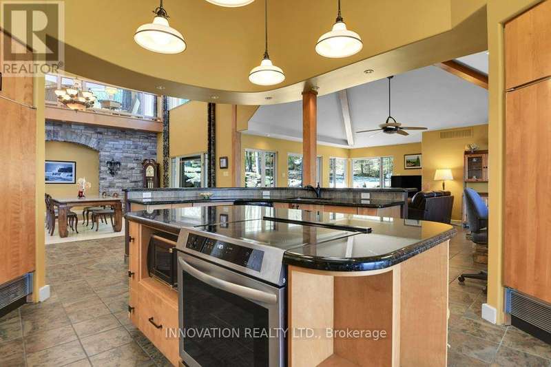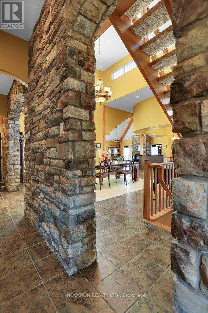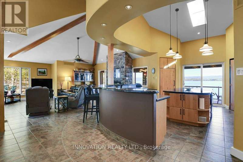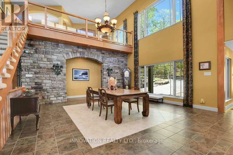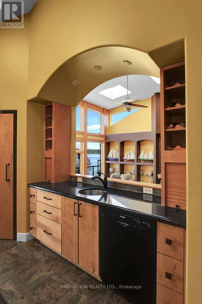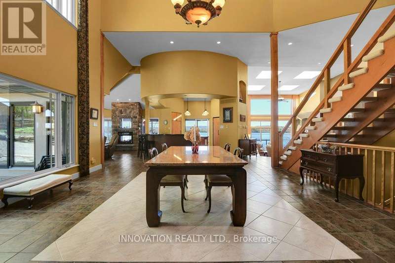 EXCEPTIONAL RIVERFRONT PROPERTY Perched safely above the Ottawa River this substantial highly customized home is designed to capture breathtaking views with private river access. Very private 1.59 acre property with 200ft riverfront. 180 degree views up & down river with fabulous city skyline vistas to the east. 4960 sqft of living space above grade plus almost 2000 sqft finished space in the walkout lower level. Unassuming entry loft level opens to large open concept space as you descend the stairs giving an indication to the scale of this home. Artisan built natural stonewalls respect the rocky terrain. Customized at every corner & curve each space takes advantage of walls of windows to feature views of river & Gatineau Hills and the customized gardens all around the property. Great Rm has lofty ceilings w/skylights, fireplace, and circular staircase to the Recreation Room below. Kitchen is central to Dining & Family Rm. This well equipped Kitchen is perfect for entertaining. Very large Dining Room is accented by natural stone walls and arches. Family Room next to the Kitchen offers lovely garden views with afternoon sun & a fireplace. Spa space offers hot tub, sauna, rain shower + bathroom. Primary Bedroom suite has it all: corner windows w/views of the city skyline, deck, sunken Library, 5pc Ensuite & spacious Walk-in. 2 main level secondary Bedrooms each have Walk-ins, 3 piece Ensuites & loft spaces accessed by spiral stairs. Finished walkout lower level provides for a 2nd Family Room with a bar, Recreation Room, Media Room, 2 additional Bedrooms, a 3 piece Bathroom, and another Office. There is also a workshop, two utility rooms, and several storage areas. Extensive landscaping w/rock gardens, Trex decks, stairs to rocky shore & dock. Rare offering. 4 bay drive through garage. Generac generator for automatic transfer to the whole home if Hydro goes out. Located in Rural Kanata North along millionaires row, just minutes to many amenities. (id:6509)