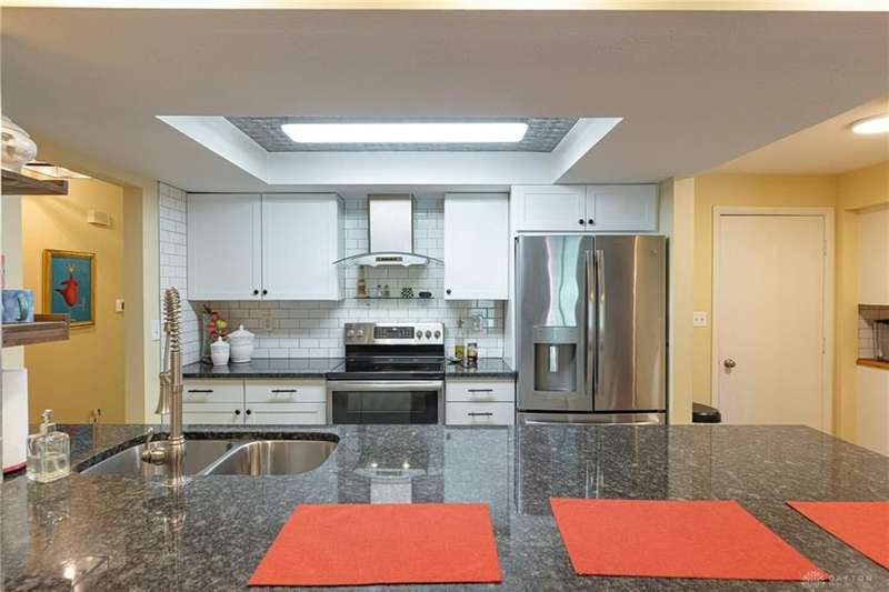 Don't miss the opportunity to own this meticulously updated, neat as a pin patio home in a most desired Kettering location. Front door welcomes you into the generous living room where you'll find new flooring and updated hall closet. Adjacent is the dining room (Wall dividers were used by owner as an additional bedroom) Through the hallway you'll find guest bedroom with a full bath and primary en suite with full bath. Both bedrooms installed with new carpet and both bathrooms totally updated. Kitchen was a major remodel...open concept to family room where walls & cabinets were removed and updated. Tile backsplash, granite countertops, & SS appliances. Check out the owner added aesthetically pleasing & useful butler pantry off the kitchen. Adjacent stackable washer/dryer added for convenience. Cozy family room with fireplace focal point. French doors lead to patio and private fenced in rear yard with mature landscaping and fire pit. Great place to spend autumn evenings with family & friends. So many updates...included but not limited to: new doors throughout, plantation shutters, garage door approximately 2 years old and a great cedar closet in garage. Cut-de-sac location offers privacy and low traffic.