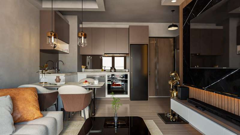 The mixed project offers 1 and 2-bedroom flat options. The flats are distributed into a living room, separate kitchen, bathrooms, and balconies. The interior designs of the flats feature high-quality materials. The flats are equipped with underfloor heating with a share meter, built-in sets, coat racks, satellite TVs, smart home systems, kitchen cabinets, laminated parquets, and wet-floor coverings.