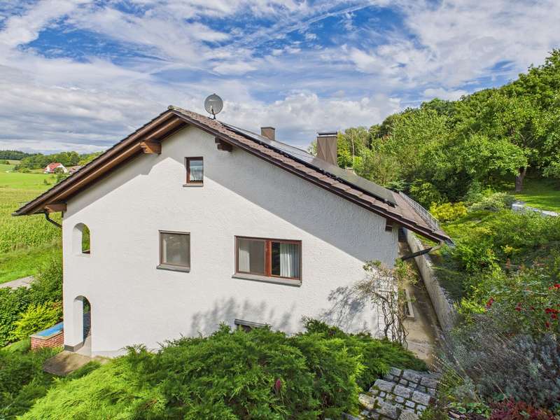 On the outskirts of Weng, conveniently located between Landshut and Straubing, lies this spacious detached house on a plot of approx. 1,667 m². Around 185 m² of living space on two levels offer plenty of room for individual development - with solid substance, potential and an idyllic garden. The hillside house, built in 1979, has seven rooms, four of which are bedrooms. The attic can be converted and opens up additional design options. The highlight is the spacious garden at the rear: lovingly landscaped, with mature trees, a garden shed and plenty of space for creative ideas. The terrace with granite flooring and awning invites you to spend relaxing hours outdoors and extends the living space in the warmer months. In terms of technology, the property boasts a photovoltaic system of approx. 24.75 kWp, battery storage with 22 kWh, additional emergency power supply and a wallbox in the garage - ideal for sustainable living. Heating is currently provided by night storage heaters, which can be operated economically thanks to PV. A new wood-burning stove in the hallway supplements the heat supply and serves the fireplaces in the children's room and dining room. External blinds, a water softening system and a newly designed guest WC on the first floor round off the features. Inside, the house is well-maintained, stylistically partly out of date - a very good basis for implementing your own style with manageable modernizations. Summary: A detached house with spacious areas, a beautiful, secluded garden and modern technology. A property with substance and potential - ideal for buyers who value space, location and sustainability. You can take a 360-degree tour at this link https://tour.giraffe360.com/68d9433e37184d1281c2b05189d1517c to get a first impression of the property. Please call us for an appointment to view the property.