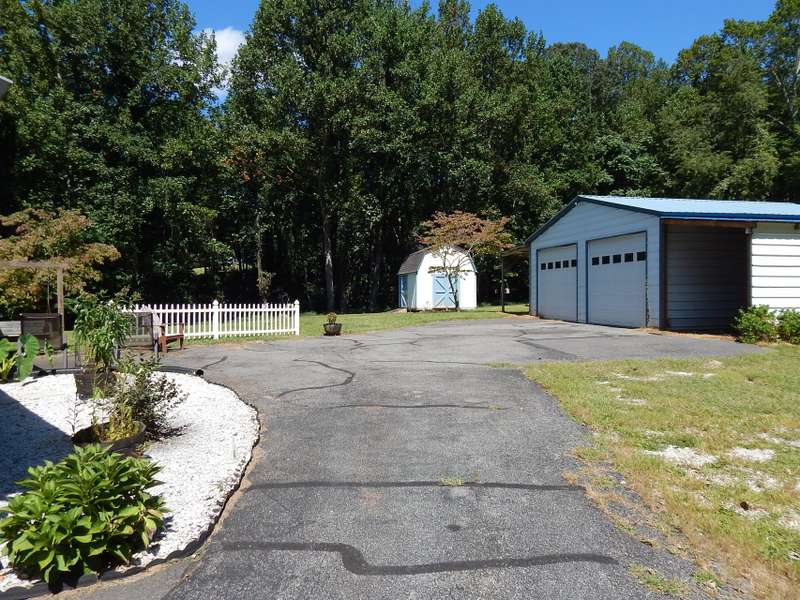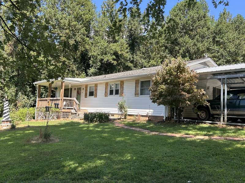This adorable home offers over 1,200 sq ft of one - level living with a full unfinished basement. Beautiful eat in kitchen features stainless steel appliances, tile and granite countertops. Cozy living room has a gas log fireplace surrounded by built in shelving with hardwood flooring that spans throughout the main living area. Large primary bedroom featuring a walk in closet, and barn door to the ensuite. Home office or 2nd bedroom (no closet) has built-in desk/bookshelves. Bonus room/den has tile flooring and direct access to the backyard, patio area. Main level laundry-bath combination. Very private 1.50 acres and includes a 2 car detached garage with two lean-tos, two car carport, paved driveway, storage shed and room to garden. Covered front porch has seasonal distant mountain view. HVAC 2021, Generac generator, water filtration system. Peaceful country feel but only a short drive to the heart of Mt. Airy for shopping & restaurants.
