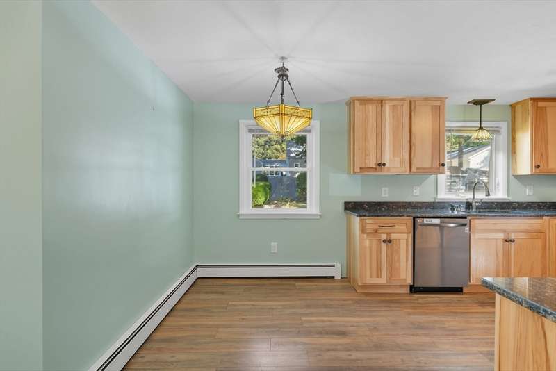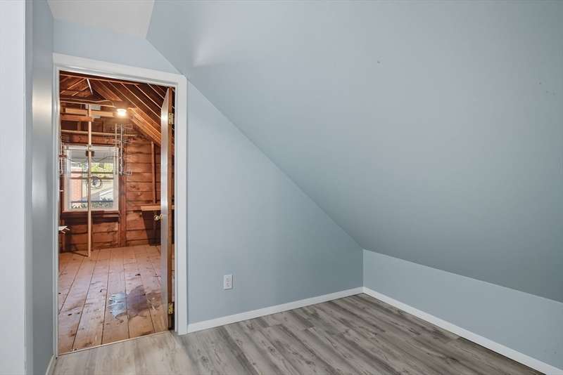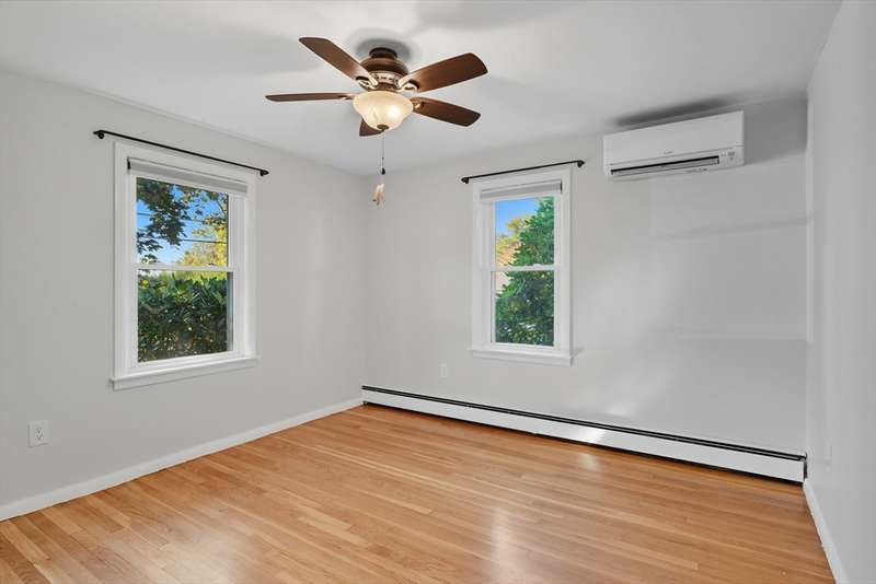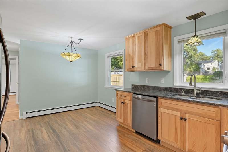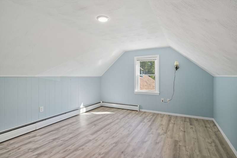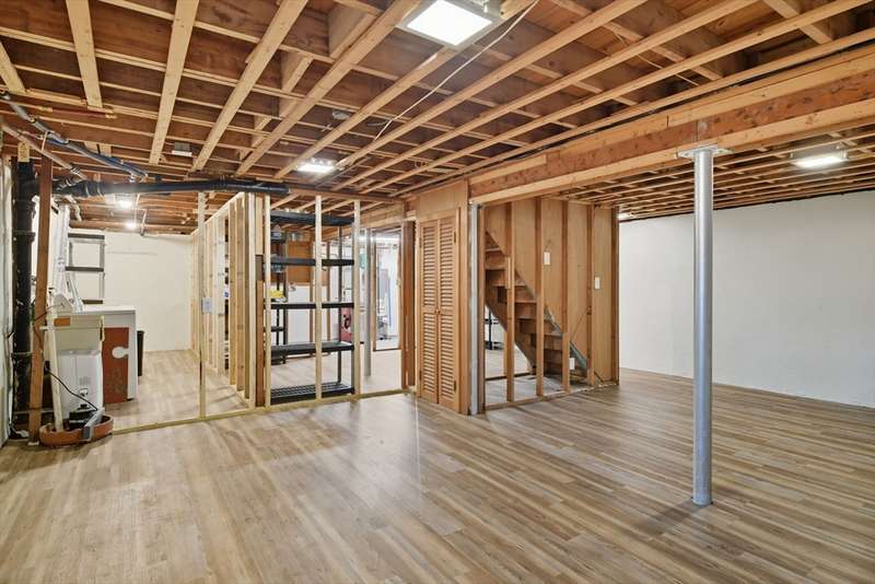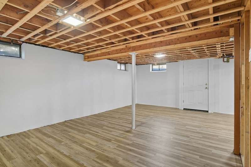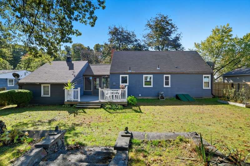CHARMING CAPE! Located on quiet street convenient to shopping this home has many recent updates! Living room with refinished hw floors, fireplace and the TV is included. Renovated kitchen with Kraft Maid hickory cabinets, stainless steel appliances and new LPV flooring. Dining area is open to the beautiful new kitchen. Full bath was gutted with new tub/shower, vanity, toilet, LPV flooring and a space saving pocket door. Two bedrooms on the main level with hw floors and both have newer mini-split air-conditioning. The second floor includes a bedroom with new LPV flooring and an unfinished area of that could be developed into additional living space. The basement has new LPV flooring and is studded should you want to finish it. Welcoming enclosed breezeway with access to the garage and back vinyl deck. Lovely back yard with terraced stone wall area, raised gardens & shed. replacement windows, hot water tank (2025), new circuit breaker box. OFFER DEALINE TUE 10/7 @ 4:00 PM.