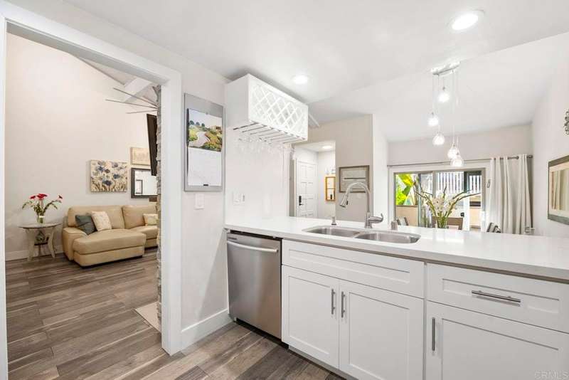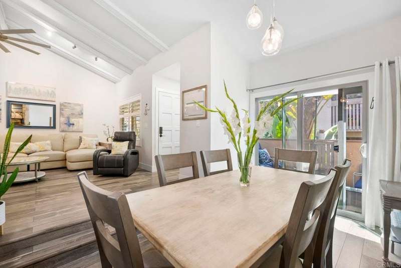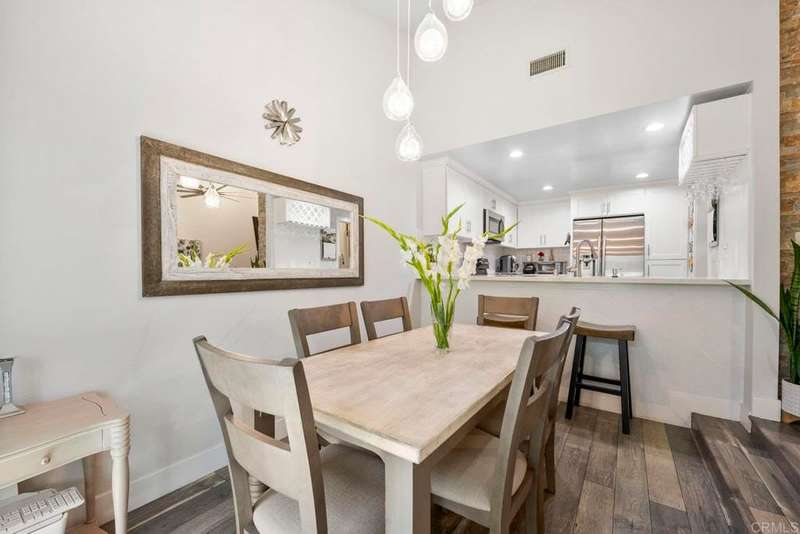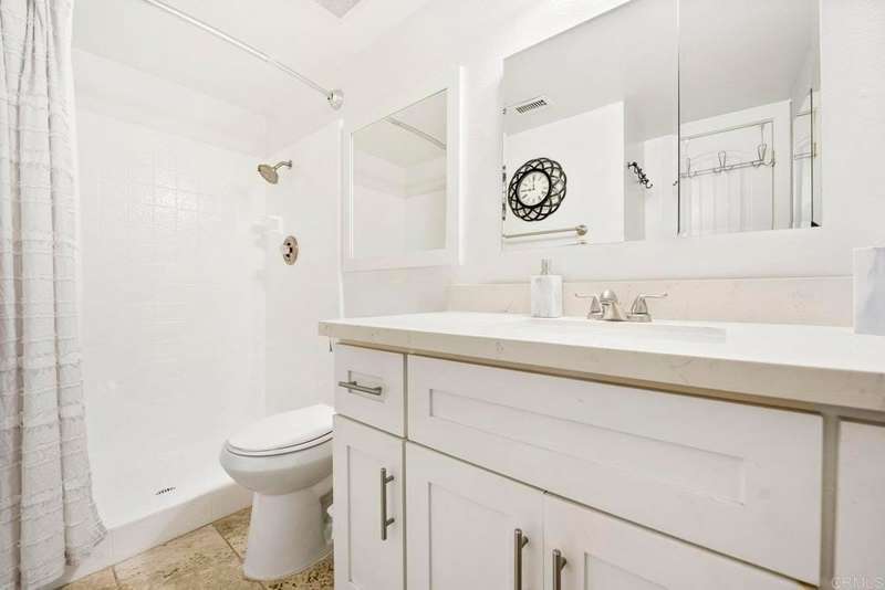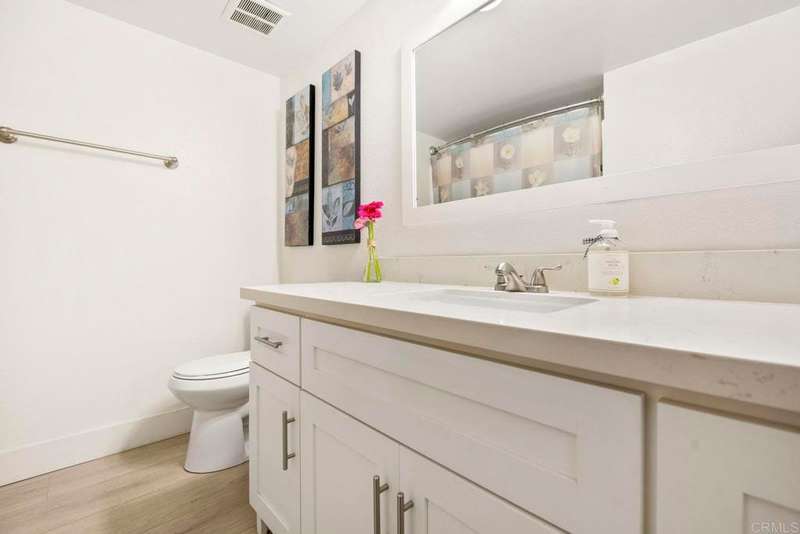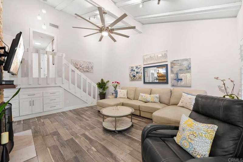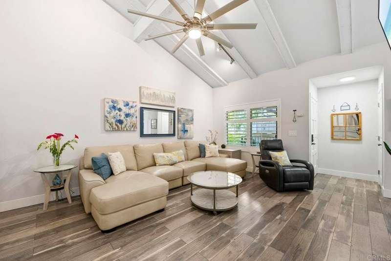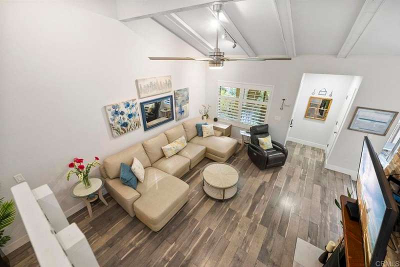 Live the Rancho La Costa Lifestyle. Nestled in the tranquil Rancho La Costa community, this bright and quiet end-unit townhome offers peaceful living with no neighbors above or below and only one shared wall. Beautifully updated with an eye for detail, the home blends comfort and functionality with soaring vaulted ceilings, wide-plank flooring, central A/C for restful summer nights, and energy-efficient dimmable lighting throughout. The open-concept layout is anchored by an inviting custom fireplace and a remodeled kitchen with quartz countertops, stainless steel appliances, and sleek cabinetry, ideal for cooking, gathering, and everyday living. Upstairs, two bedrooms and two bathrooms are complemented by a full-size washer and dryer on the same level. Families will appreciate access to highly regarded schools, including La Costa Meadows Elementary, San Elijo Middle School, and San Marcos High School. Step out onto your sunlit deck, perfect for morning coffee, evening wine, or weekend lounging. Additional highlights include new ceiling fans, built-in storage, an ecobee smart home thermostat, and one assigned covered parking space with its own storage cabinet. Ample guest parking is available in the community parking lot. Enjoy easy access to scenic hiking trails in the Rancho La Costa Preserve, world-class golf, and shopping and dining at the Omni La Costa Resort. Just minutes to Carlsbads most beautiful beaches, this is Southern California living at its best.