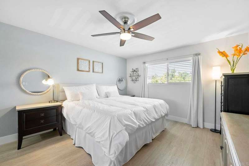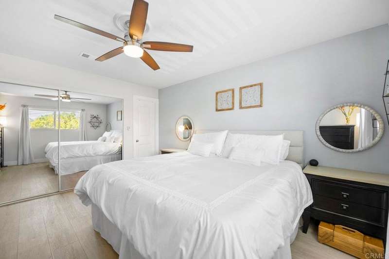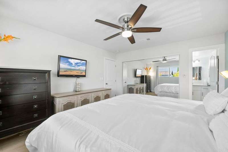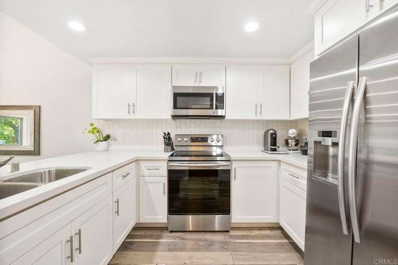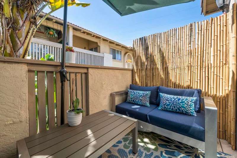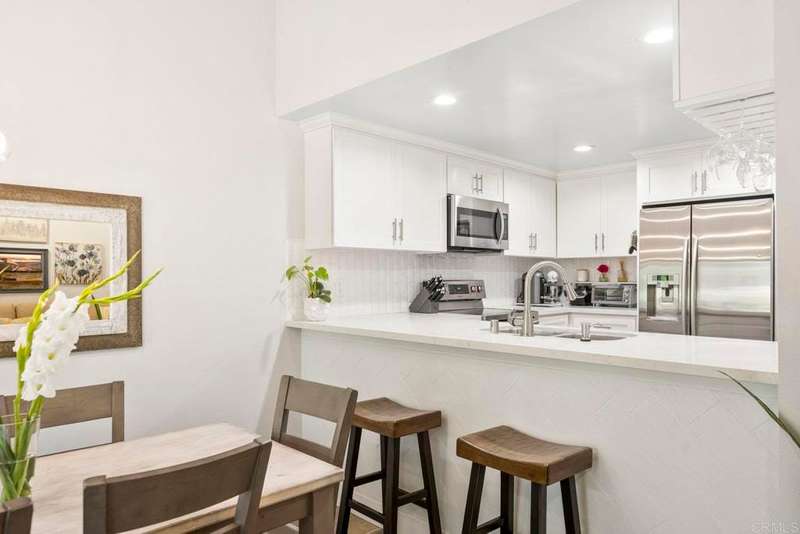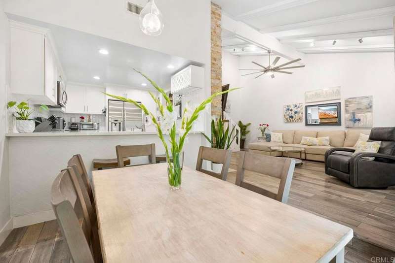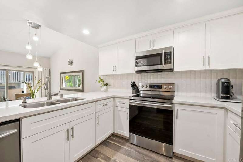 Live the Rancho La Costa Lifestyle. Nestled in the tranquil Rancho La Costa community, this bright and quiet end-unit townhome offers peaceful living with no neighbors above or below and only one shared wall. Beautifully updated with an eye for detail, the home blends comfort and functionality with soaring vaulted ceilings, wide-plank flooring, central A/C for restful summer nights, and energy-efficient dimmable lighting throughout. The open-concept layout is anchored by an inviting custom fireplace and a remodeled kitchen with quartz countertops, stainless steel appliances, and sleek cabinetry, ideal for cooking, gathering, and everyday living. Upstairs, two bedrooms and two bathrooms are complemented by a full-size washer and dryer on the same level. Families will appreciate access to highly regarded schools, including La Costa Meadows Elementary, San Elijo Middle School, and San Marcos High School. Step out onto your sunlit deck, perfect for morning coffee, evening wine, or weekend lounging. Additional highlights include new ceiling fans, built-in storage, an ecobee smart home thermostat, and one assigned covered parking space with its own storage cabinet. Ample guest parking is available in the community parking lot. Enjoy easy access to scenic hiking trails in the Rancho La Costa Preserve, world-class golf, and shopping and dining at the Omni La Costa Resort. Just minutes to Carlsbads most beautiful beaches, this is Southern California living at its best.