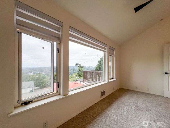 Available Now! This adorable, bright and spacious upper-level duplex offers stunning views of Mt. Rainier and a serene living experience in a beautifully maintained 3-bedroom, 1-bath residence. Perched above the basement level rental, this home lives like a beautiful retreat, featuring exclusive use of the garage and a tranquil front yard complete with a pond and lush landscaping. Gas and electric included.