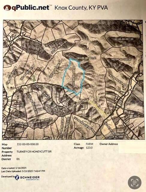 Here is the land you have been looking for! This 123 acre (more or less) unrestricted land is being sold per boundary deed. PVA has 123 acres this is an estimate not a survey. This should be enough property to build your dream home, farm, hunt, and the list can go on. You are about 10-15 mins from Barbourville. The property has been timbered within the last few years. Schedule your showing today!