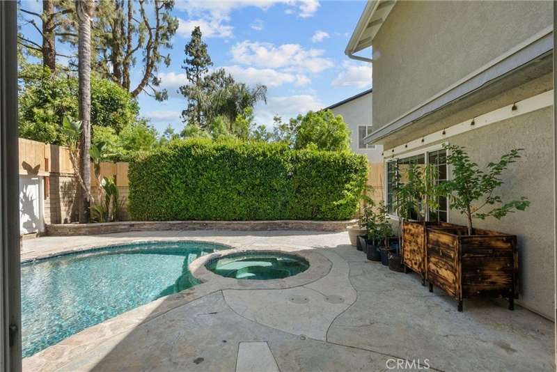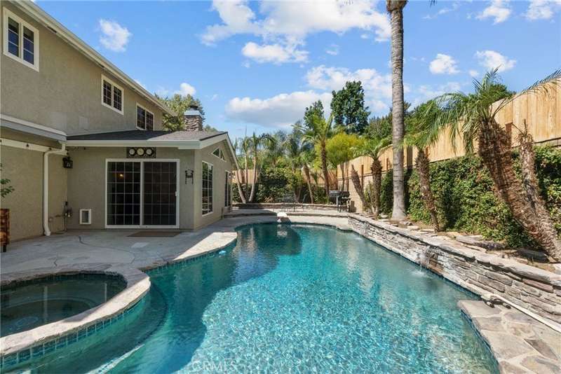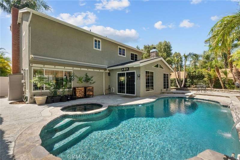 Welcome to 23707 Via Avant, Valencia — a charming 4-bedroom, 3-bathroom home offering 2,023 square feet of comfortable living space on a 5,662 square foot lot. Nestled at the end of a quiet cul-de-sac, this two-story home is perfect for families looking for space, privacy, and convenience. As you arrive, you’ll notice a welcoming front patio, ideal for relaxing in the evening breeze. Inside, the main level features two spacious living areas, a cozy fireplace, a formal dining room, and a bright galley-style kitchen with stone countertops and ample cabinet space — perfect for preparing family meals or entertaining guests. Upstairs, you'll find four generously sized bedrooms, including a peaceful primary suite with an en-suite bath and views of the lush greenery of Glen Park. With two full bathrooms upstairs and a third bathroom downstairs, there’s plenty of room for everyone. Step outside to your private backyard oasis — complete with a sparkling heated pool and spa, all powered by WiFi-enabled pool equipment. The backyard backs directly to Glen Park with a private door in the fence to gain instant park access, offering beautiful scenery and no rear neighbors. A remote-controlled retractable awning allows you to customize your shade while you enjoy poolside BBQs or morning coffee on the patio. Located within walking distance to the highly rated Meadows Elementary School and just minutes from shopping, dining, and freeway access, this home blends comfort, community, and convenience. Don’t miss your opportunity to live in one of Valencia’s most desirable neighborhoods. Schedule your private tour of 23707 Via Avant today — this one won’t last!