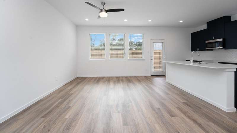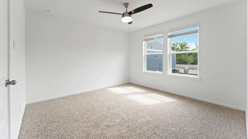 Welcome to the Dove floor plan, where modern design meets exceptional functionality. This two-story home offers an open-concept layout perfect for families and entertaining. The first floor boasts a spacious family room seamlessly connected to the dining area and a well-appointed kitchen. The kitchen features beautiful quartz countertops, a large center island, ample cabinetry, and a walk-in pantry for added storage. The powder room on the main level adds convenience for guests. The second floor is designed with comfort in mind, offering a primary bedroom suite complete with a large walk-in closet and a beautiful bathroom featuring dual sinks and a walk-in shower. Two additional bedrooms on this floor share a full bathroom, while a versatile utility room adds convenience. A bonus storage closet and optional features allow homeowners to customize the space to fit their lifestyle. This home plan includes a 2-car garage, front porch, and ample storage space throughout.