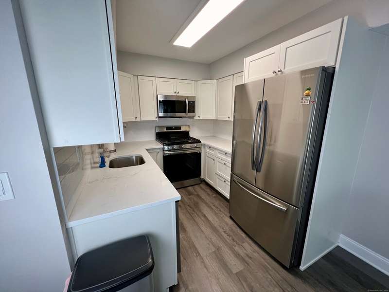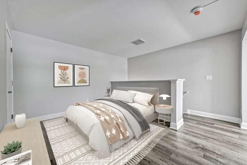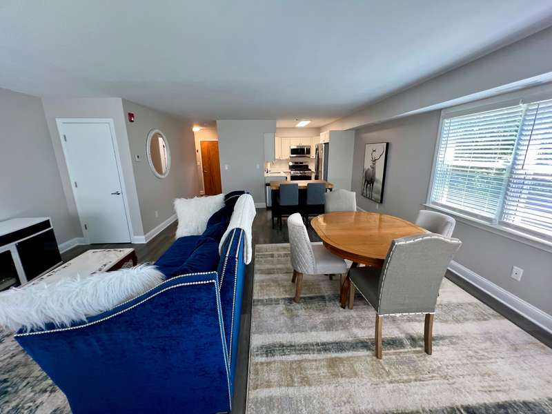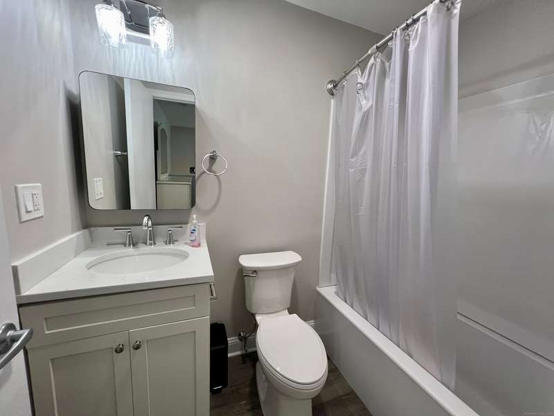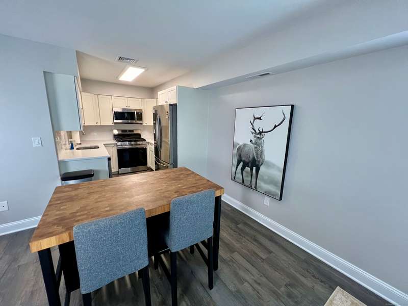 Step into this completely remodeled, sun-filled 850 sq ft apartment featuring an open-concept design and modern finishes throughout. The beautifully appointed kitchen boasts quartz countertops, stainless steel appliances, custom cabinetry, and elegant tile backsplash - perfect for entertaining. The generous living and dining area flows seamlessly together, while a convenient half bath on the main level accommodates guests. Upstairs, you'll find a spacious bedroom with walk-in closet and private ensuite bathroom, plus a charming nook ideal for a home office or reading retreat. Additional features include under-stair storage and a dedicated mechanical room for extra storage space. This well-maintained building offers ample parking and is located above professional offices for a quiet living environment. Lease requirements include first month's rent plus two months security deposit, proof of income, and renter's insurance at signing. There is a $40 Rentspree application that includes credit and background check, with a minimum credit score of 650 required. Tenant is responsible for all utilities. No pets and no smoking permitted in the building.