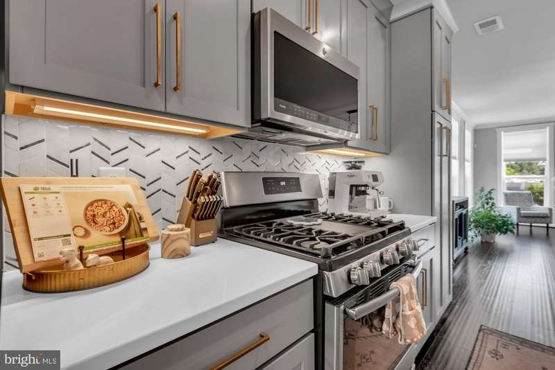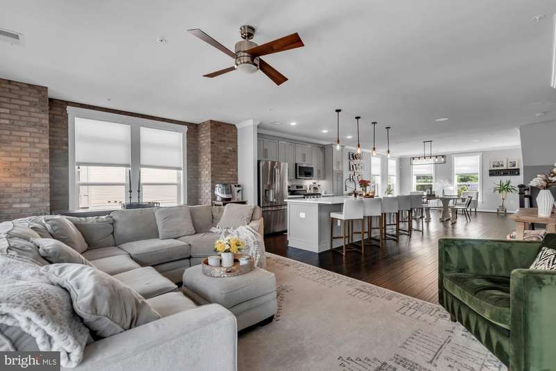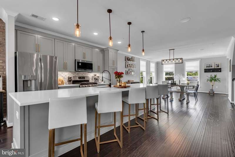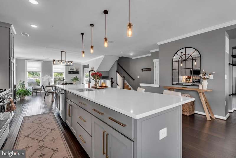 COSMOPOLITAN ANNAPOLIS TOWNHOME BOASTING SKYLINE ROOFTOP DECK! ADMIRALS SQUARE DUAL ASPECT CORNER UNIT offering 2 levels of living with upscale detailing and finishes! 9-Foot ceilings, terrace-like walls of windows, a turnkey urban neutral palette, brick accent walls, and upgraded flooring to enhance any decor. The entry staircase will take you into an open concept Dining area and chef's choice restaurant-inspired dining bar Kitchen showcasing sleek quartz & stainless steel surfaces. Adjoining the kitchen is a glass-encased living room with a gas fireplace to further enhance ambiance. Upstairs you'll find a Generous Primary Bedroom Suite with 2-sided walk-in closet w/organizers & luxe spa Bath! The upper level also has two Additional bright ""Ëœn' airy Bedrooms (flexible use spaces) and a Full Bath with a double vanity. Stairs ascend to a PANORAMIC ROOFTOP VIEW DECK for alfresco dining and entertaining beneath sun & stars! Extended, rear access parking pad & 1-car garage. Minutes to Downtown City Dock harbor, the USNA, Westfield/Towne Centre Malls, eclectic restaurants & crab cake eateries, marinas/boating, and commuter RTs 50/97/2. NYC SOPHISTICATION IN TANDEM WITH RELAXED BAY LIVING!