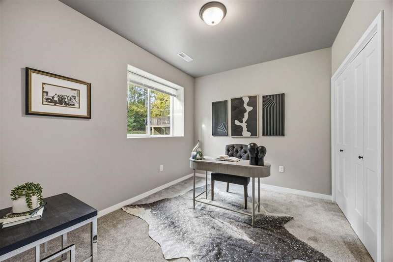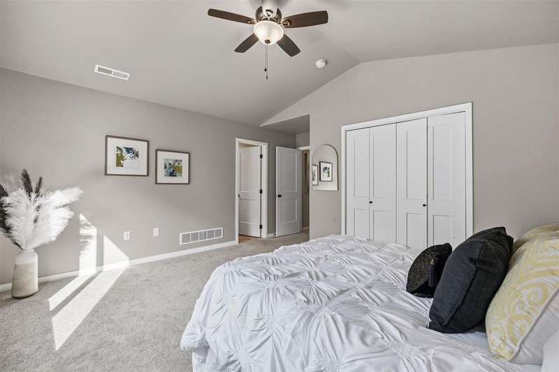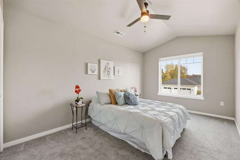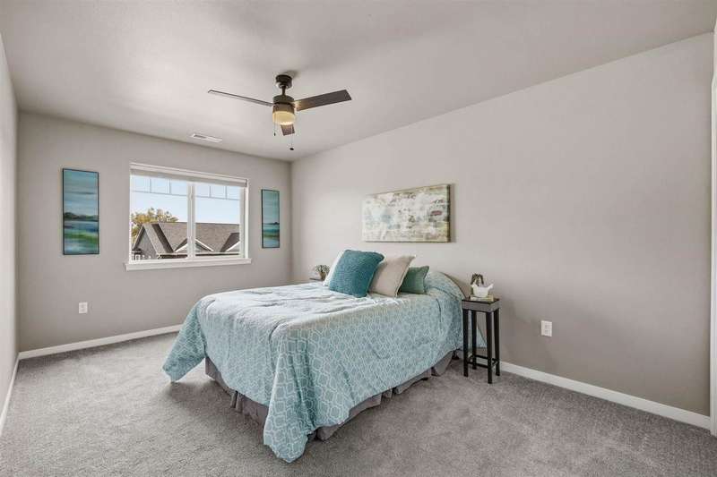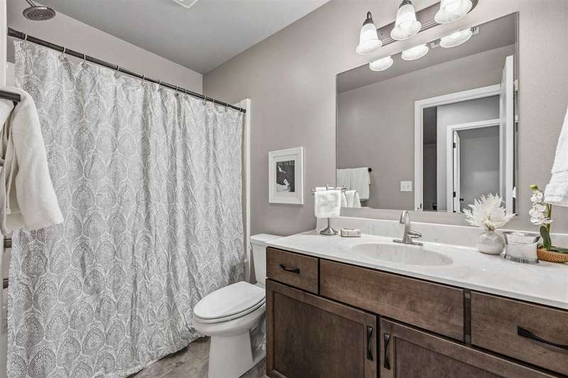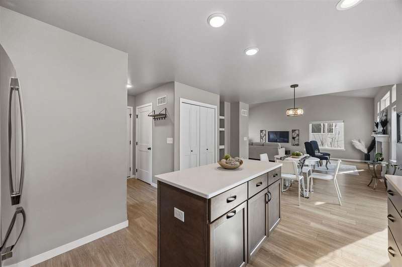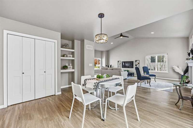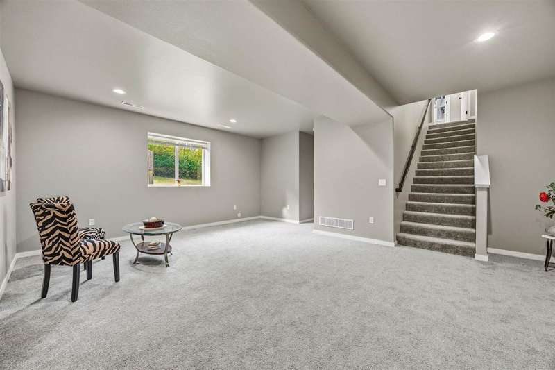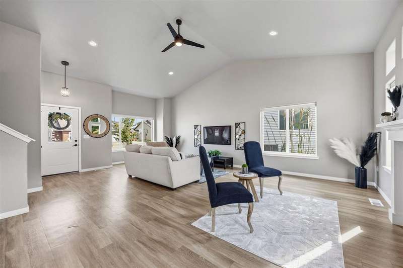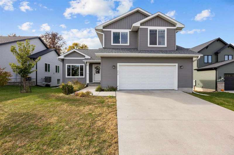 This stunning two-story home offers beautifully designed living space with modern finishes throughout. Step inside to an airy, open-concept main floor featuring vaulted ceilings, luxury vinyl plank flooring, and abundant natural light. The spacious living room centers around a cozy gas fireplace, perfect for relaxing or entertaining. The kitchen is stylish and functional with stainless steel appliances, a pantry, and a convenient dining area. Upstairs are three generous bedrooms, including a primary suite with private bath and walk-in closet. The finished lower level adds flexible living space with rough-in for a second kitchen. Enjoy peaceful evenings on the back deck overlooking a yard that backs to mature trees for added privacy. Nestled on a quiet cul-de-sac, this home offers comfort, style, and a truly ideal location.