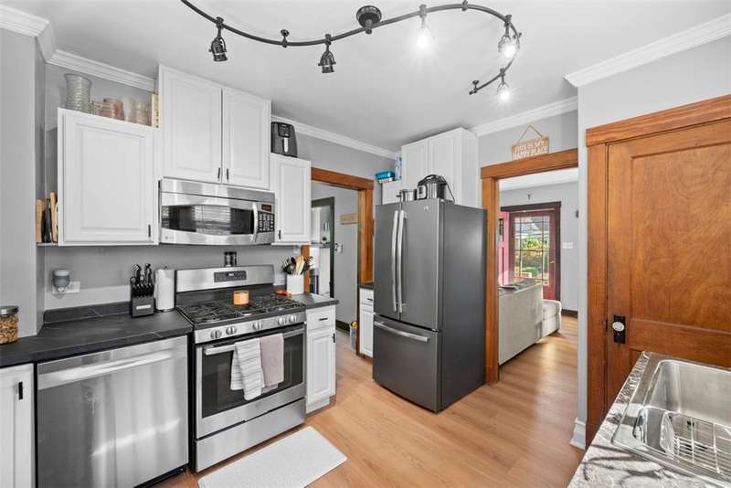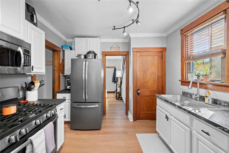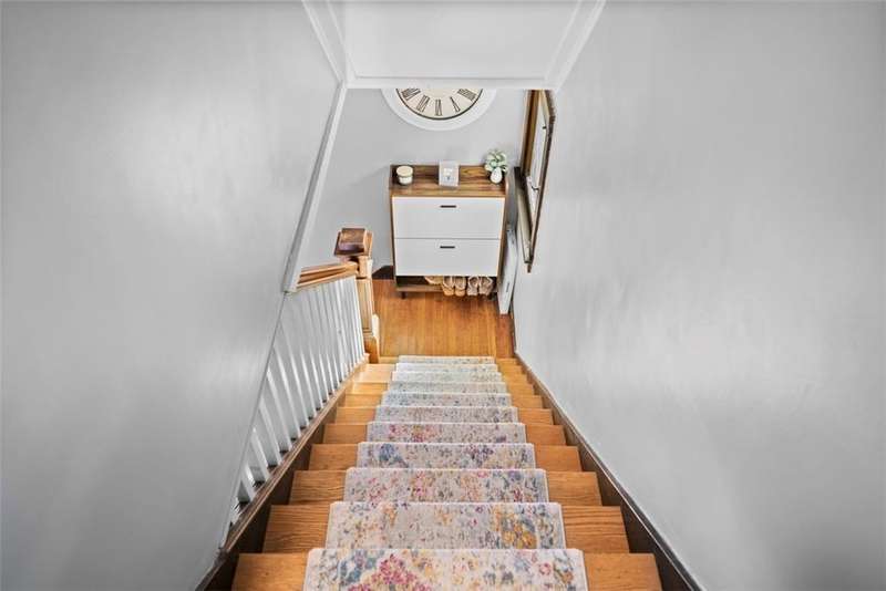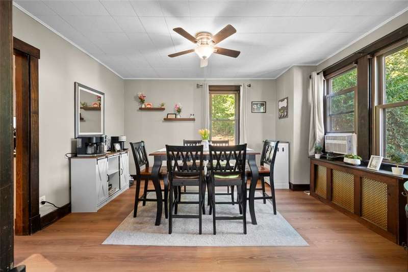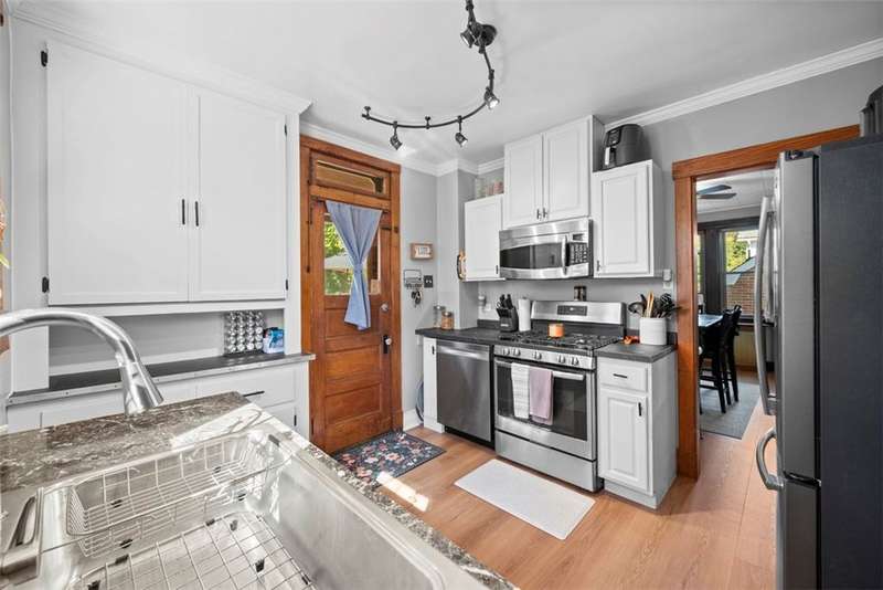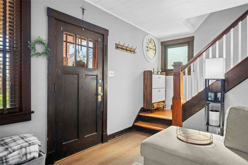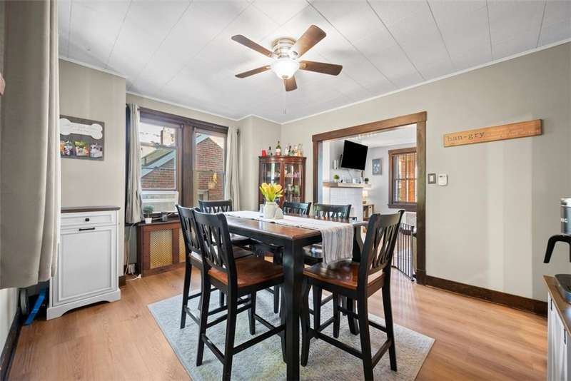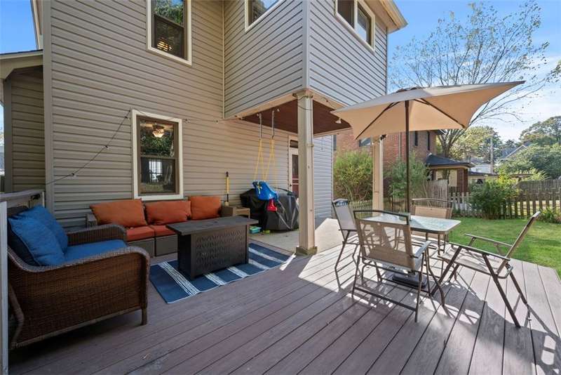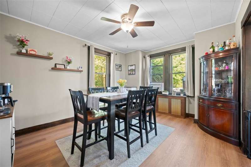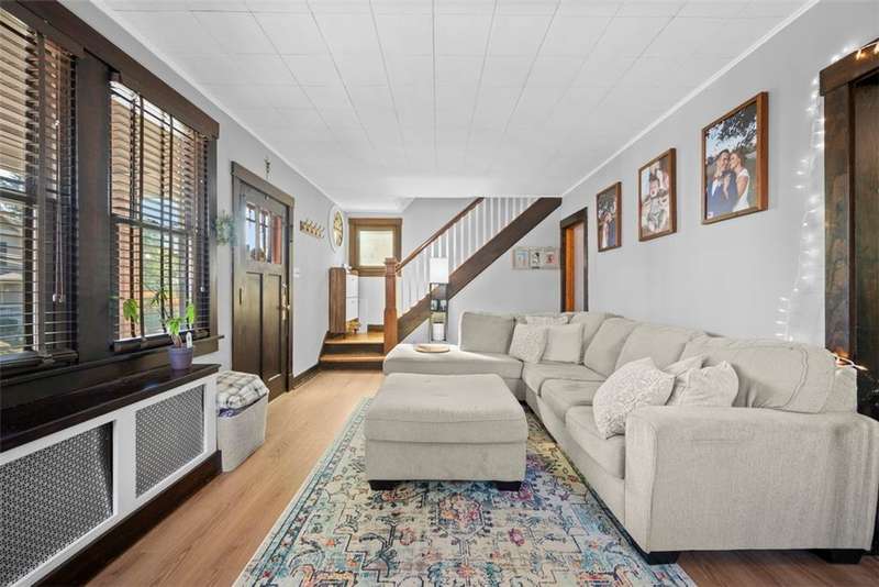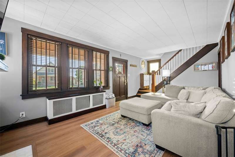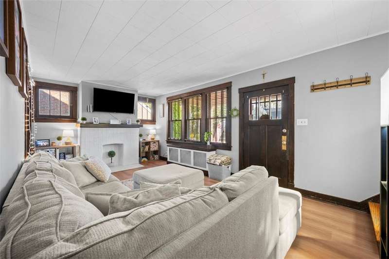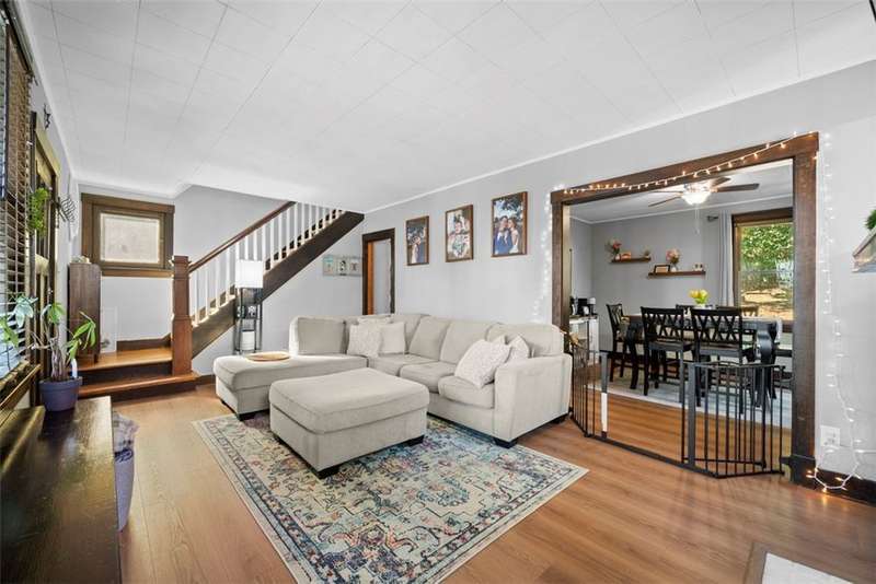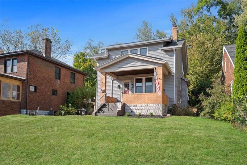 This beautifully updated home blends character with modern comfort. A large covered front porch greets you as you step inside to the spacious living room. The large dining room full of natural light flows seamlessly into the kitchen, creating a perfect layout for gatherings. The kitchen features SS appl & an oversized SS sink. From the kitchen, step out onto the spacious back deck overlooking the generous flat backyard, incl a shed for storage. Upstairs, you'll find 3 bedrooms (one is captive) & a full bath. The basement offers a game room, a laundry area, storage & a deluxe Pgh potty. MAJOR UPDATES provide peace of mind, including a BRAND NEW roof, NEW siding, NEW gutters, LVP flooring on the main level, and a NEW furnace installed in October 2024. Located just steps away from the neighborhood playground and ONLY 15 minutes from downtown Pittsburgh, offering both convenience and a welcoming place to call home!!